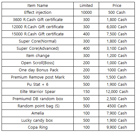 3) Happy Hour event(When you stay at the server at this time, you will get rewards) - 18:30 : Random R.Cash Bag - 19:30 : 2nd Gacha Ticket(1EA) - 20:30 : Item Extract