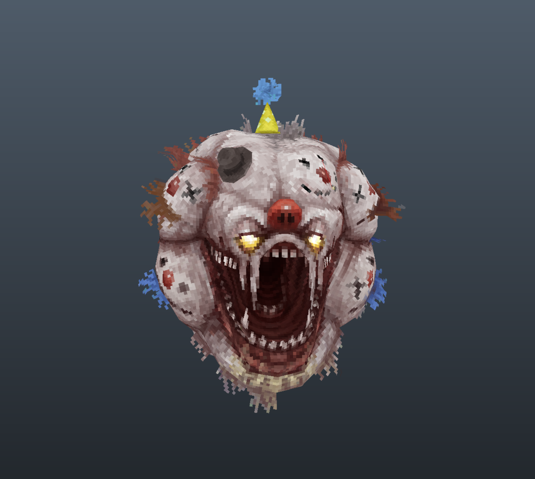 Since this is all a fantasy we’ve had the liberty to go absolute ham on the environment, enemy, and weapon design. In well over a dozen levels each is presented in a different theme, built from the grounds up in a different style ranging from cartoon caricature, through horror and science-fiction, to pure psychedelia. Nickelodeon toon humor is mixed with nightmarish weirdness, colors are saturated, the shapes are wobbly, and the whole experience will feel much like falling down the rabbit hole. A Doctor Seuss storybook illustrated by H.R. Giger.