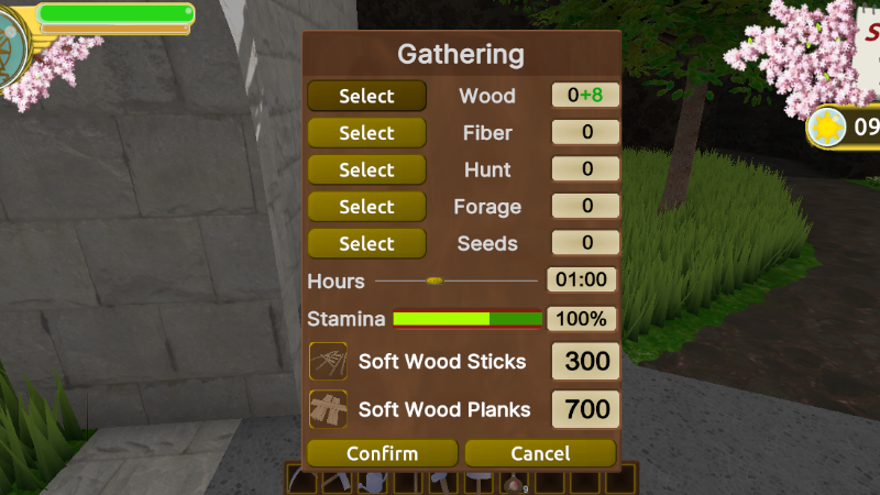 Cart -Wood: odd weekdays gives softwood, even weekdays give darkwood -Fiber: just linen thread -Hunting: weekday influences the type of animal product -Forage: each day of week has different fruits and vegetables, afternoon/morning also has different resources -Seeds: changes between large amounts of grain and a couple of crop seeds, you get better traits as your skill increases
