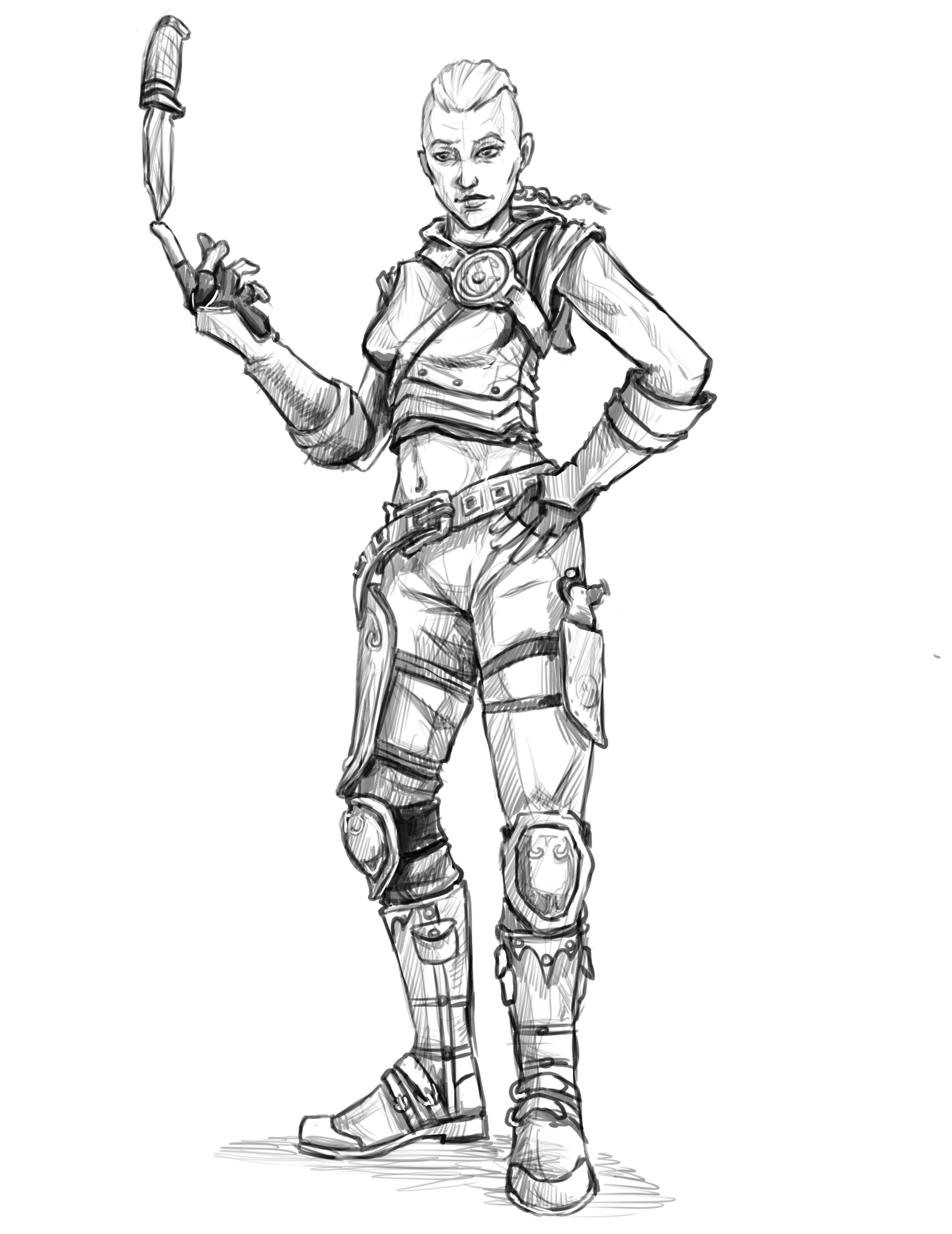 Martha was sick a lot as a child. She believed that she was only a burden and a worry for her father, who spent every coin on medications. After discovering who the Gatewalkers were, she wanted to become one herself. Her father was against it. Martha thought that he could change his mind if she had more strength. So, she joined him on his hunting trips and spent the following years hunting animals, climbing trees, throwing knives, and shooting arrows. However, heavy exercise aggravated her disease. One day, while fighting a boar, Martha passed out and almost died. The local doctor was useless. The only hope was a scientist living in the Guild.