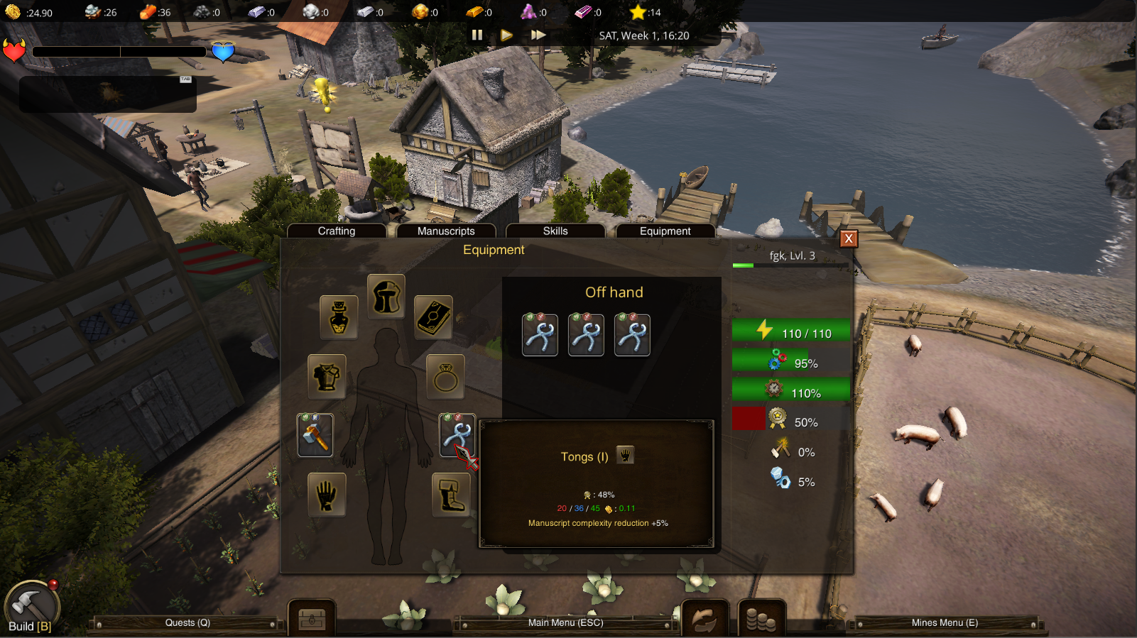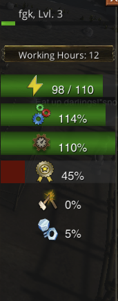 1. Energy - will be reduced by - 1/s when worker is crafting and + 1 / s when not crafting ofc. Same goes for Morale and Crafting speed during the day. Overall now it is pretty fixed as after 8pm workers just get refreshed stats and that's it. New system will count when the worker is NOT at work and thus refresh +10% of their stats. That will kinda give working shifts more meaning. 2. Accident reduction change % - this stat is basically from skills atm, but I feel that it should be displayed and will also be included in items for workers. 3. Manuscripts reduction % - also same as above stat, but will now be included in items for staff. This kinda helps differentiate items for Heroes, Gladiators and Staff.