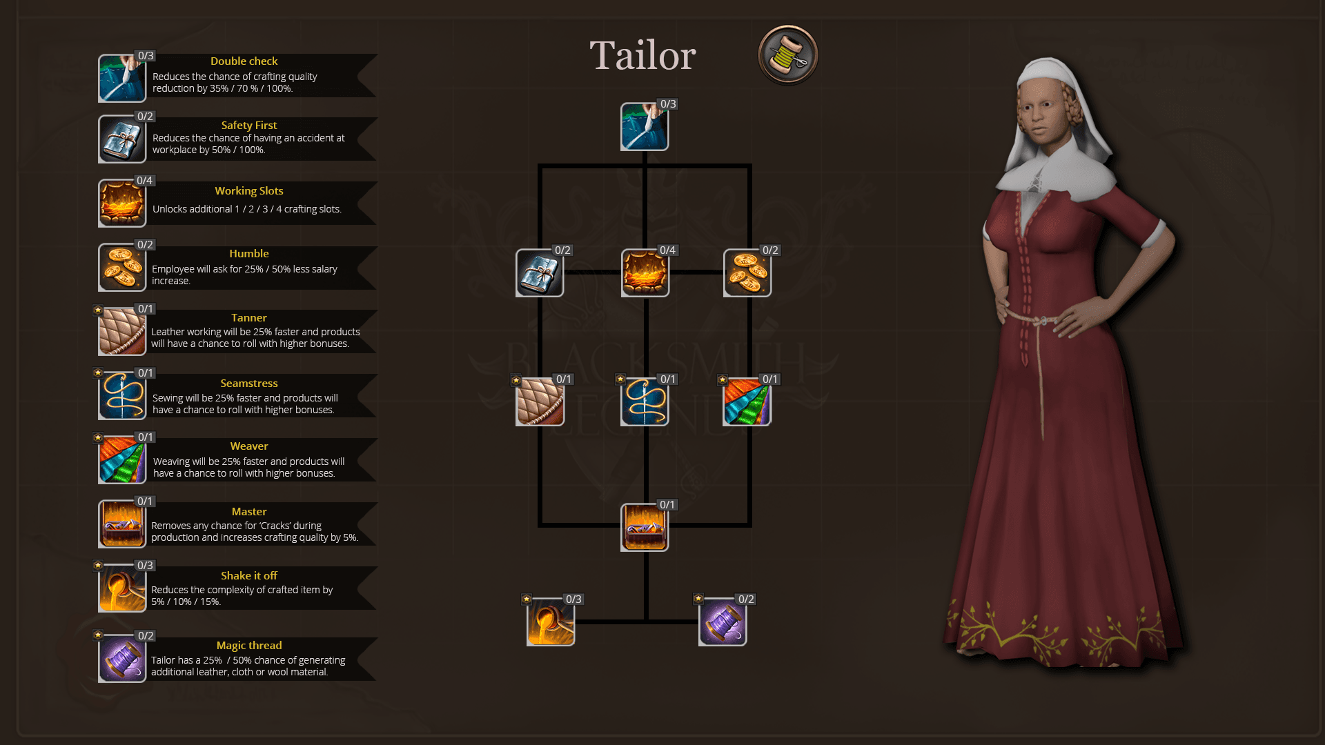 Employee allowance per fame is now increased and you can have Tailor as soon as you open Tavern. Which may be a lot for new players, but the quests will be in the bulletin board, so they are all optional.