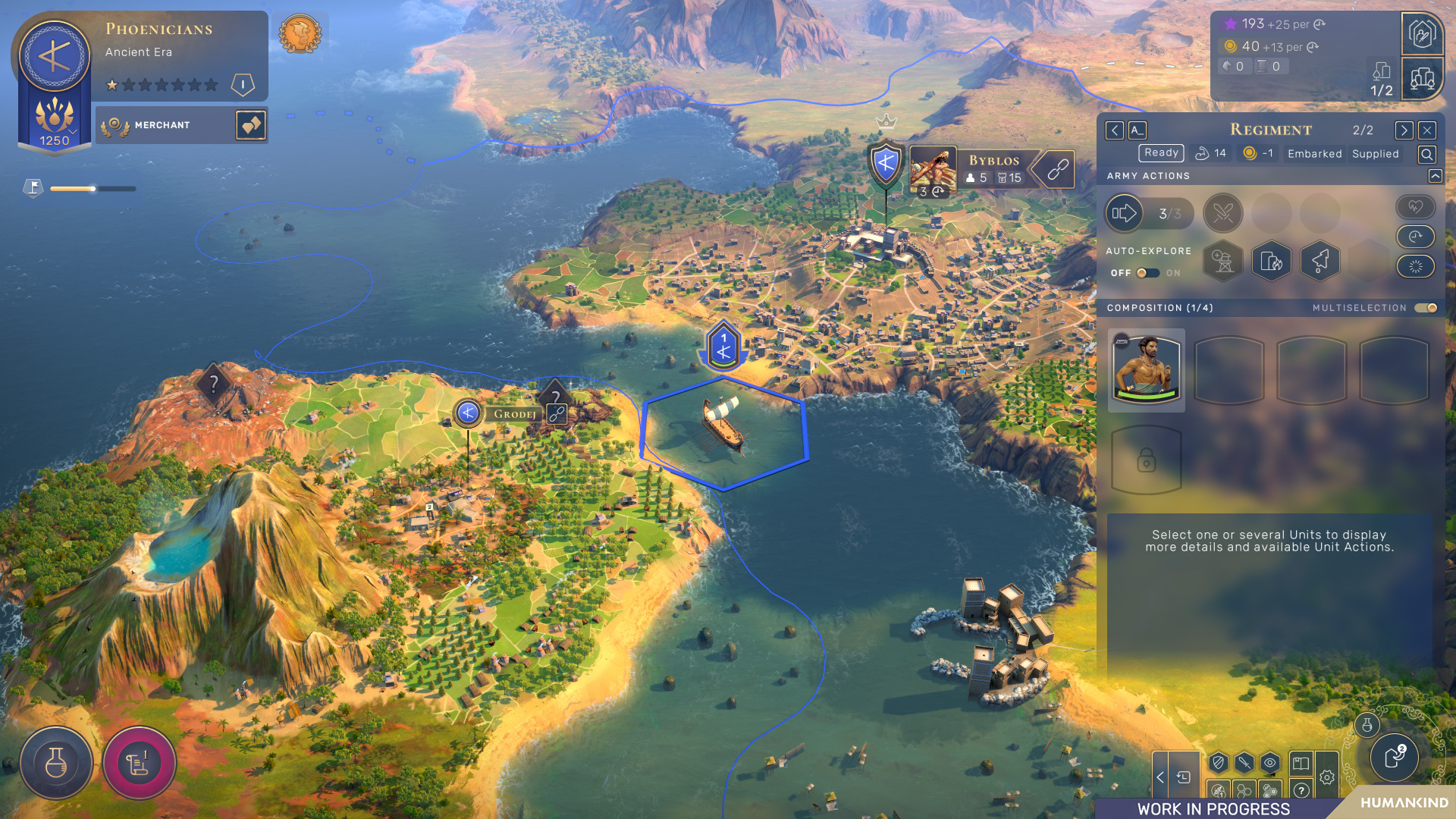 The Phoenicians were a naval power who founded cities along the coasts of the Mediterranean and were influential traders. Unfortunately, many of you found that this legacy was not represented well in Humankind. The Bireme may have let you explore the waters more freely than other cultures, but your outposts and thus your empire were still landlocked. While your boats zipped off to far away lands, your scouts would trudge across difficult terrain...
