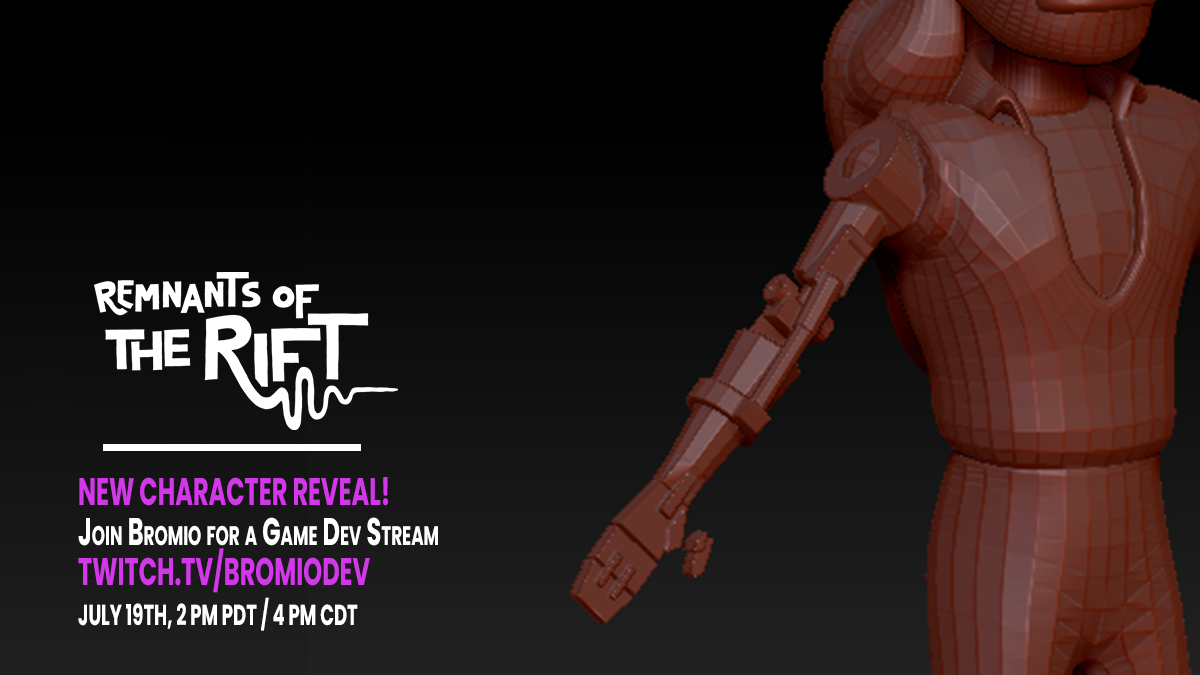 Another transmission coming to you from another dimension as we’ll be hosting a game dev stream next week where our talented art team will be working on a NEW character debuting in the stream! Don’t miss out on the fun times live next week on Tuesday, July 19th at 2 PM PDT / 4 PM CDT on twitch.tv/bromiodev!