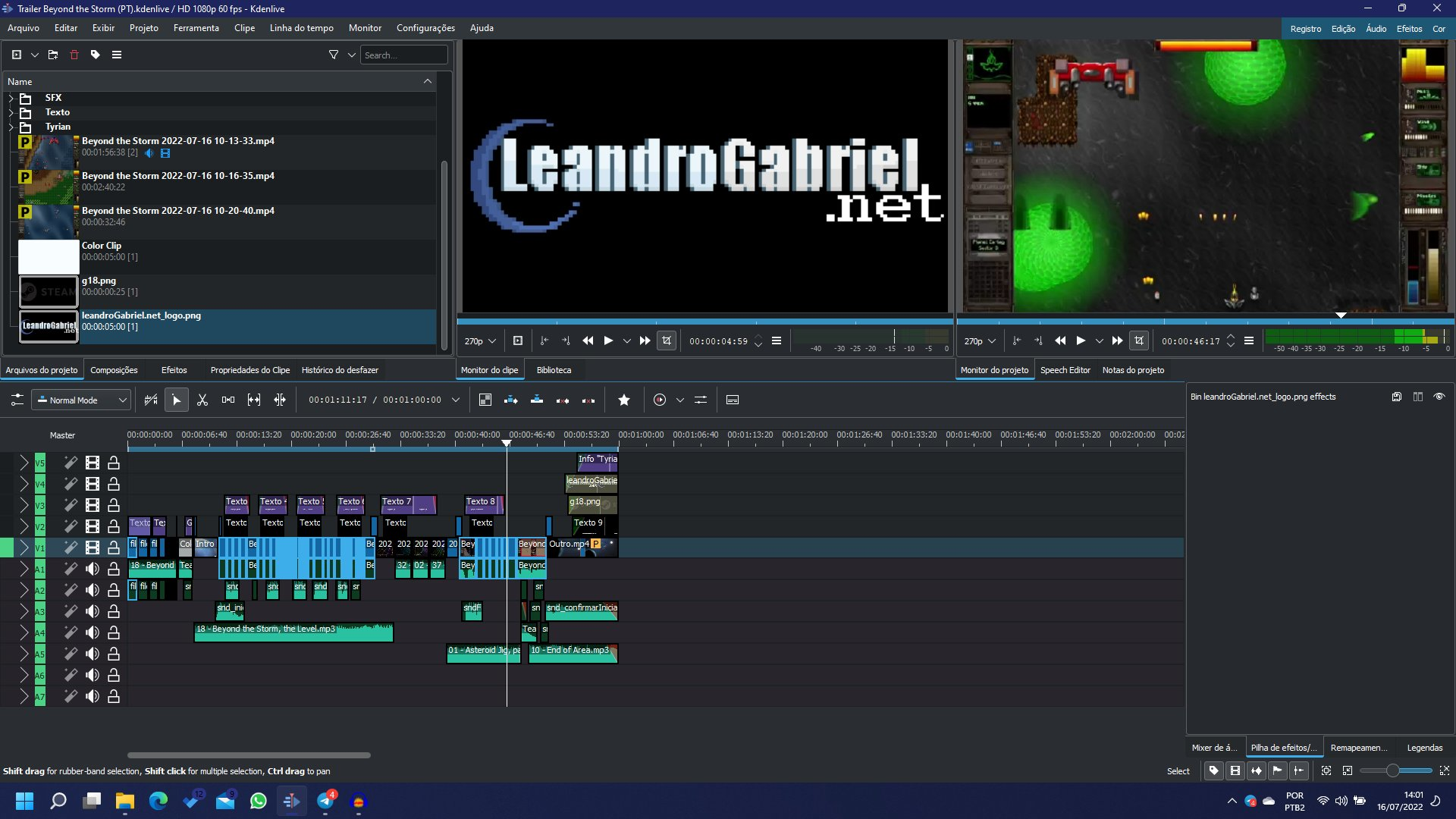 With everything done, I've just needed two days to do the recordings, and another 3 hours to put everything together on KdenLive. The result was a simple yet beautiful timeline: