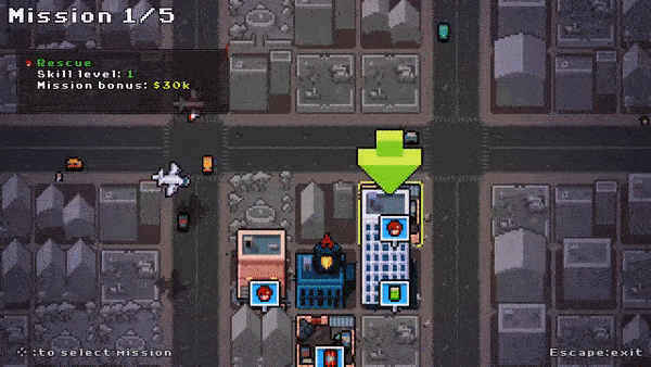 The game now takes a more traditional approach to the city-view, which honestly fixes a lot of situations and design problems that I was running into with the more fancy stuff I was trying to do! Also – I can’t keep wasting time on that mission screen because after all.. it’s just a mission screen! With the new mission structure in place, it also became easier and clearer to balance the whole difficulty regarding your opponents and the missions.