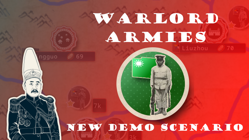 Rise of the White Sun is a strategy game set in the Warlords era (China in the 20's). I just added a playable scenario to the demo. You can find it here. This is a fast and quick fighting for Guangxi province between small warlord factions.