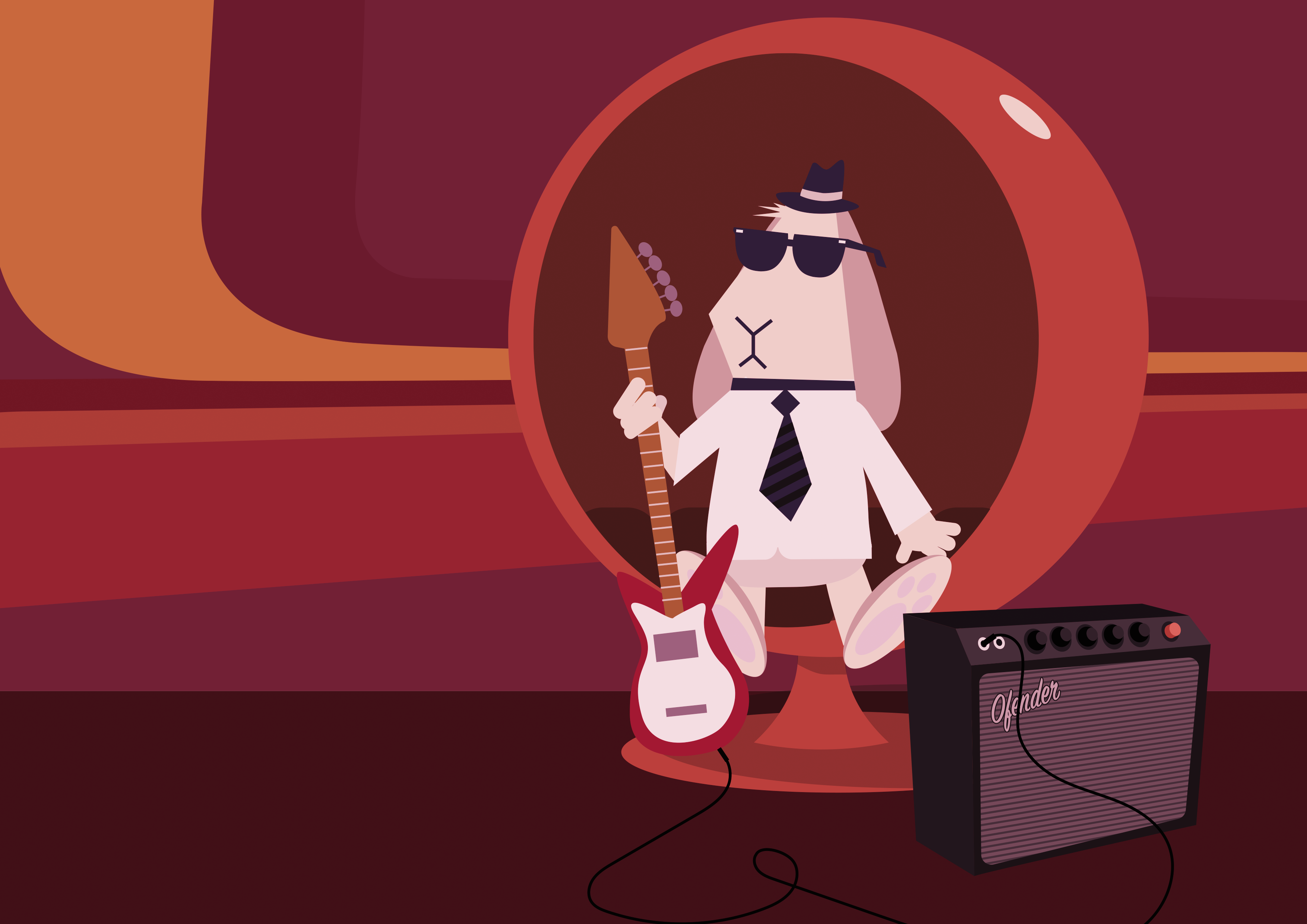 Tomate is still funny, sarcastic and impulsive. Always ready for action. He says what he thinks but doesn't think what he says. No filters. He doesn't like to get up early, has a bad temper and unusual strength for a rabbit. Hates dogs. Wears a hat, tie and sunglasses. Nothing else. But he always denies that he goes naked. A real showman who keeps all his charisma and can't resist singing and dancing at the slightest opportunity. Especially blues and rock'n'roll.