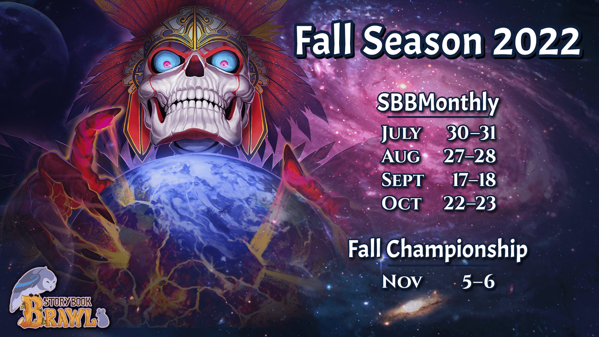 There will be regular SBBMonthlies in November and December, but they will be part of the 2023 competitive year. 2022 Organized Play will culminate with the World Championship on December 2-4, with the Fall Championship in early November as its last qualifying event. Those with keen eyes will realize this means the November SBBMonthly (2023 OP) will occur before the World Championships. We know it's a little odd, but its the simplest way to do it.