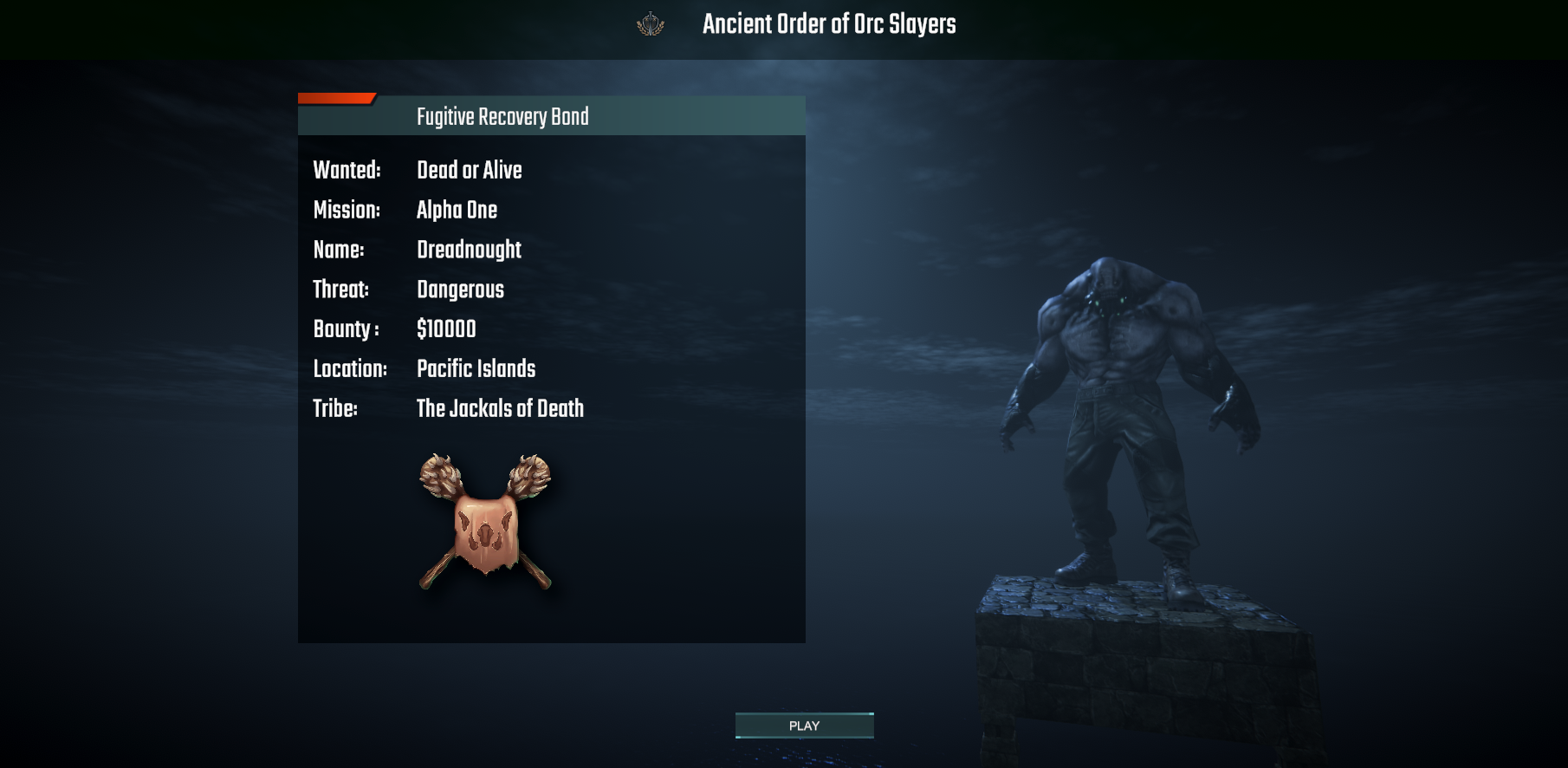 We are working on the UI and menus at present. Here is a work-in-progress screen of the bounty details screen , essentially details on the creature you will be hunting. Key pieces of information here are their horde and their value. Value equates with how difficult they will be to kill or capture. Creatures will be members of a particular horde, with the bosses being at the top of the horde.