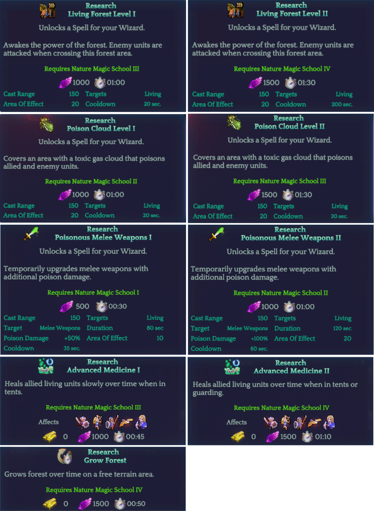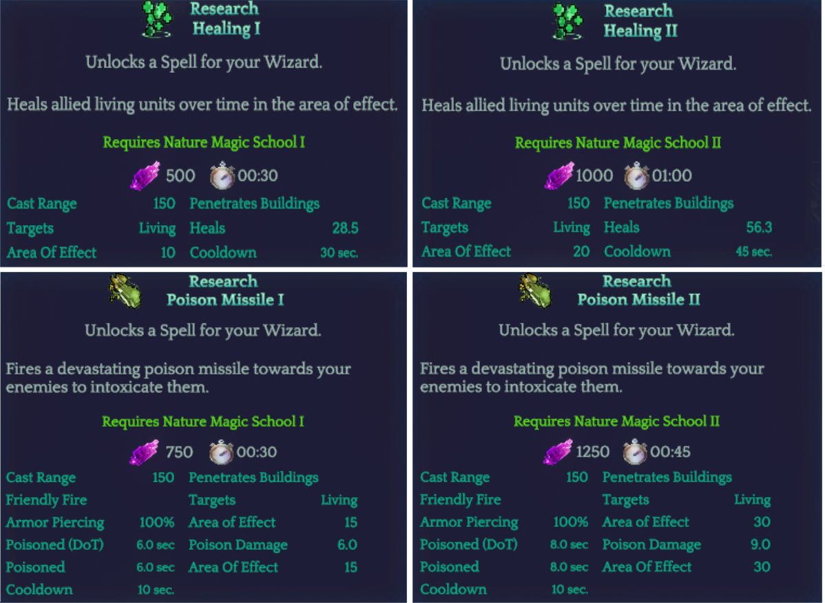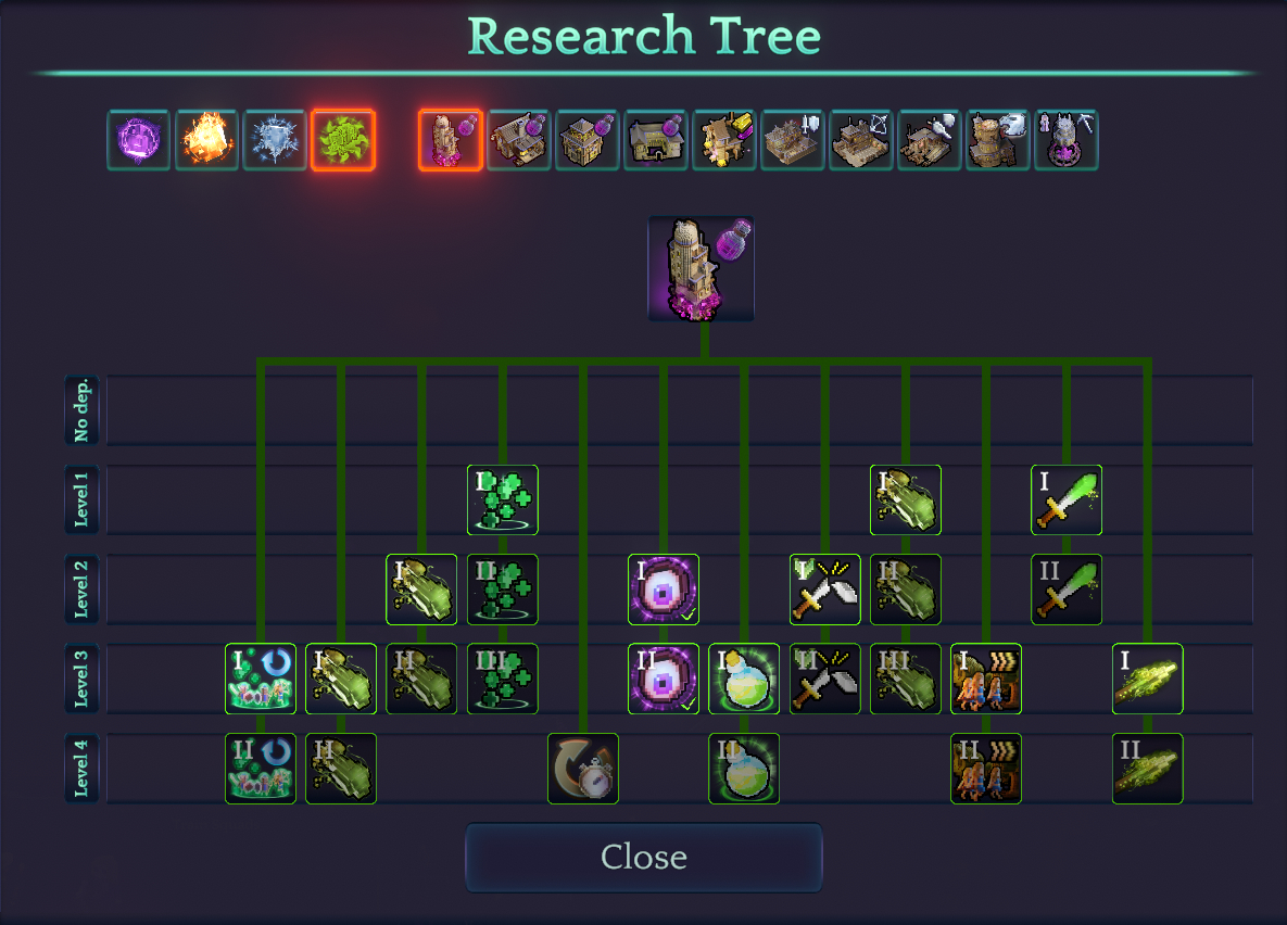 The new research tree fixes the problem of understanding the structure of the game progression. You can now check which building to build to unlock a research option or which magic school level you need for a specific spell. It will also give the player a better understanding of which content is currently in the game.