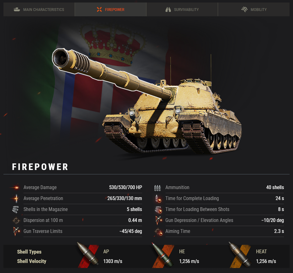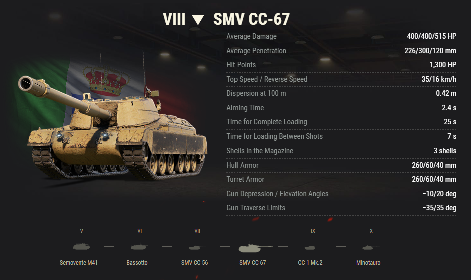 The parameters displayed are valid for the vehicle with each crew member trained to 100% major qualification level. Some vehicle characteristics can be further improved with the Commander's bonus to major qualification level, crew perks, and skills, as well as special in-game items.