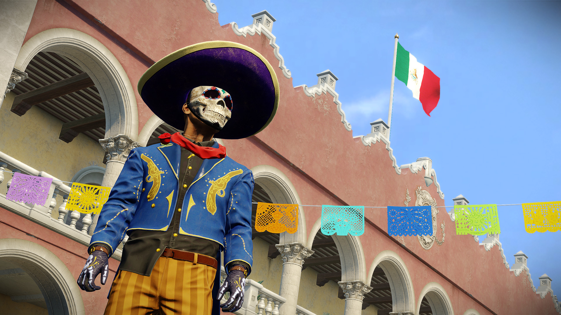 Outfit items: The Pistolero Muerto Suit, The Pallbearer Gloves, The Telaraña Mask Weapon skin: The Heist in Peace. Weapon charms: Ladrón de Pollos, Husuda Granada