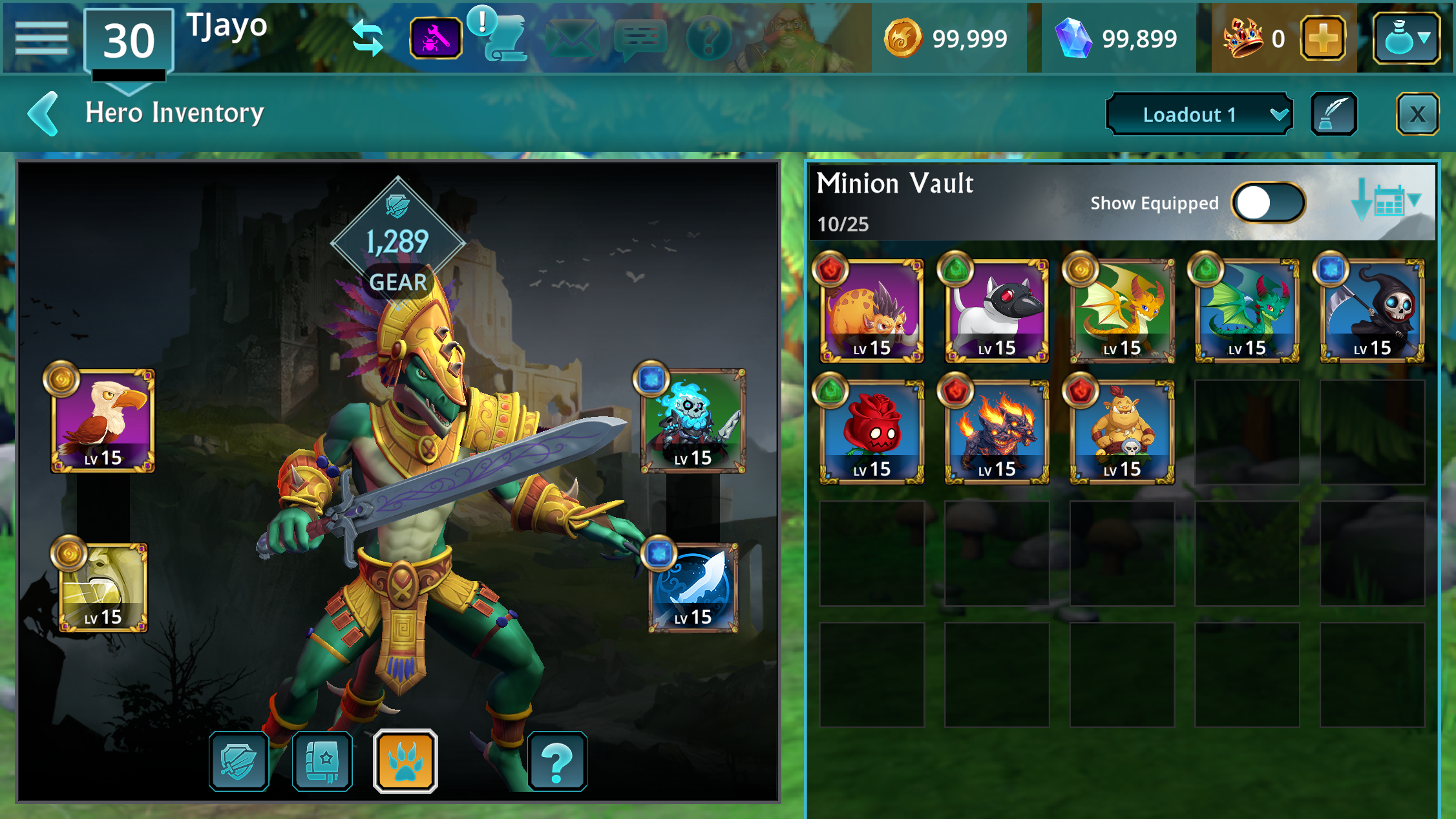Deal 1x Dark Damage. Remove all Blue Gems. For each Imp Gem on the board, gain 10-15 Ultimate Spell Power.