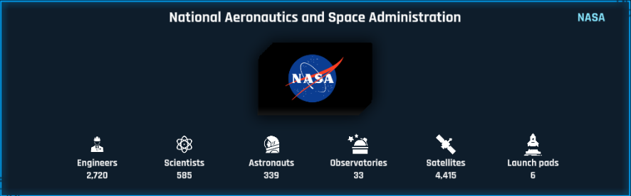 Each country will operate its own space agency (that can be part of international space agencies), Every space agency contains Engineers, Scientists, Astronauts, Observatories, Satellites and Launch pads.