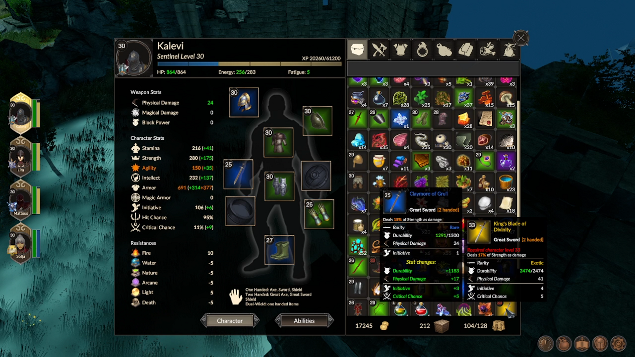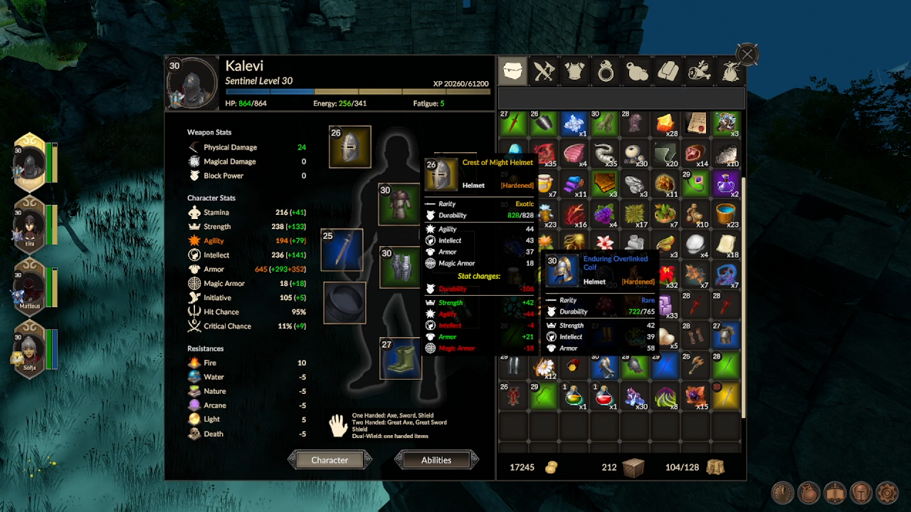 Durability: all weapons and armor now have certain durability that decreases with each combat. Once a gear item’s durability reaches 0, that item is no longer usable and does not contribute to the character’s stats.