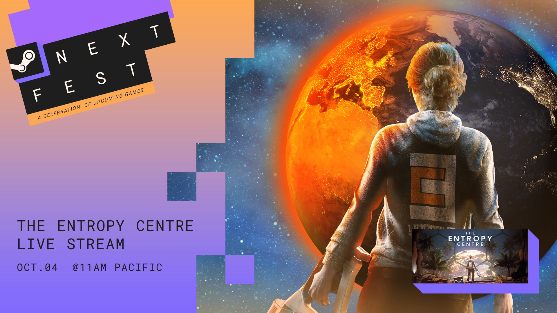 Join us for our Next Fest Livestream of The Entropy Centre. It'll be the FIRST TIME that we show everyone the full game! Also, during the Livestream, we will also be answering your questions on the screen and via chat.