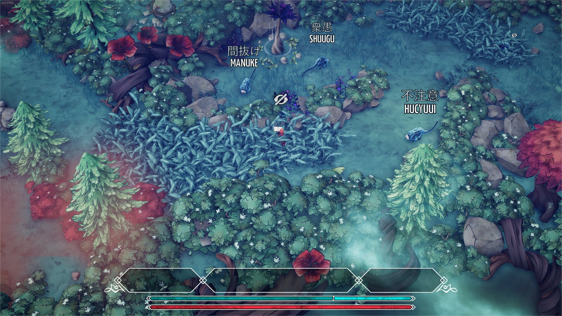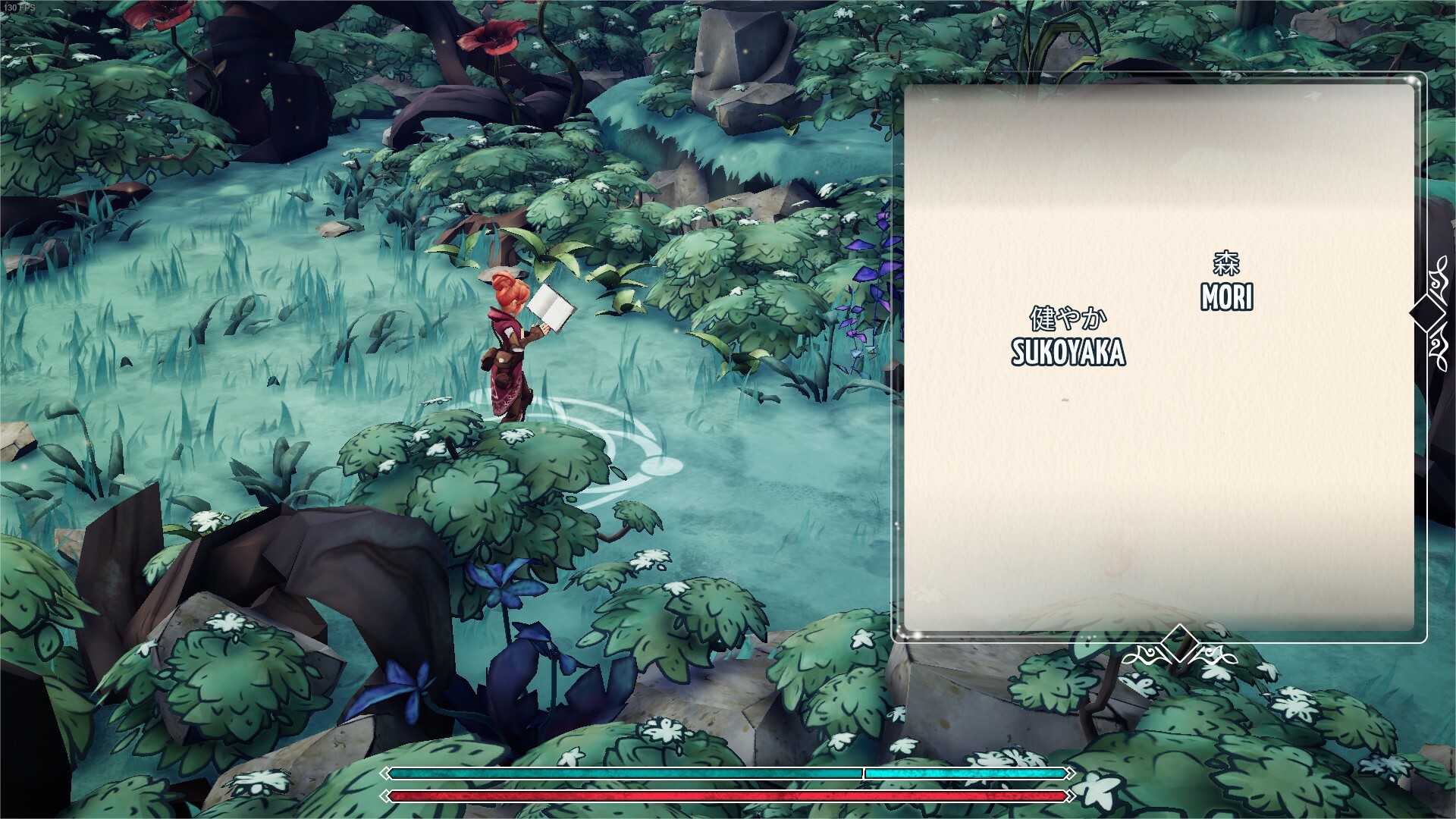 Just like Epistory and Nanotale, Outshine will work with companion words which are romanized versions of the words you have to type in Japanese.