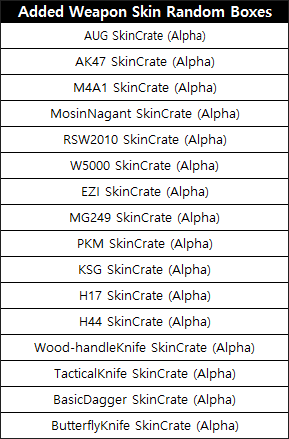 - Added random box items for each weapon where you can obtain weapon skins.