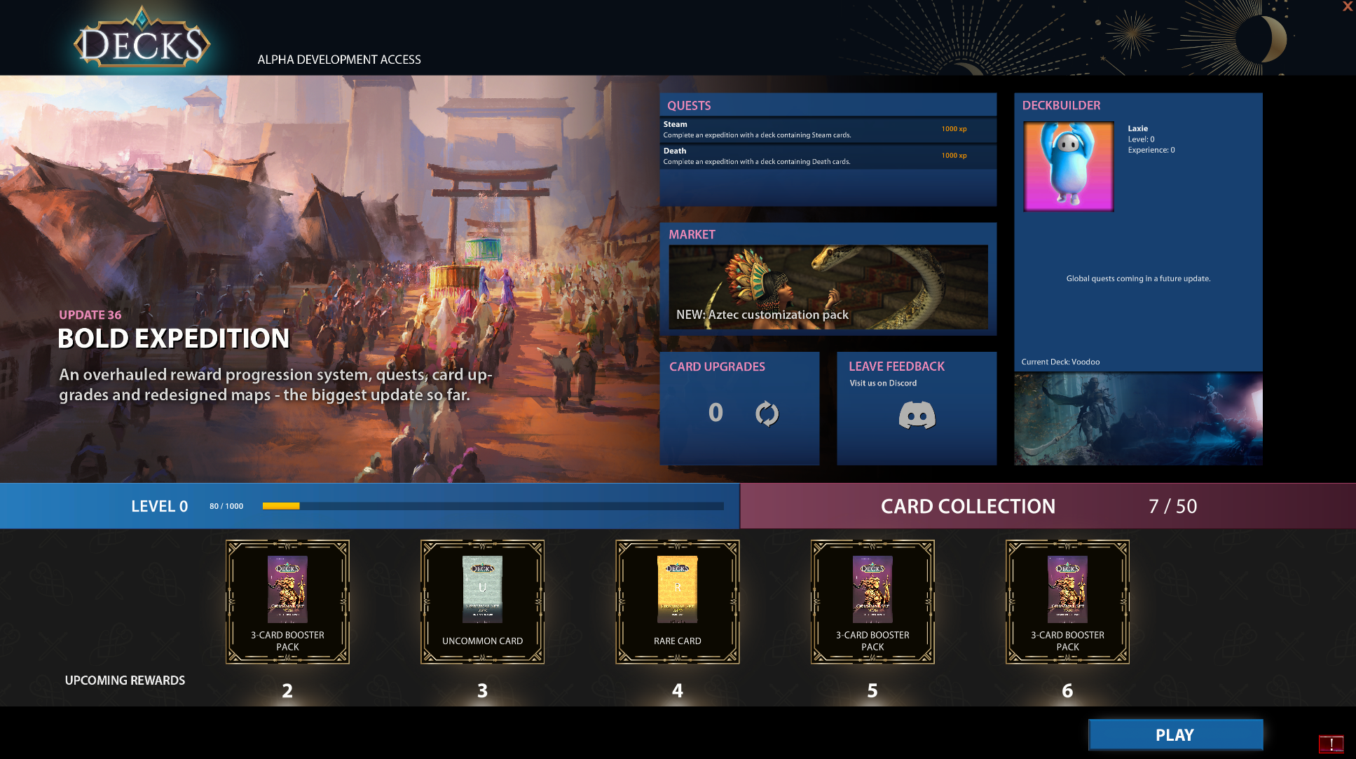The progression will now heavily revolve around daily quests. Each day, you will be assigned a selection of quests that ask you to complete specific maps with specific decks. The aim is to make your progression more rewarding and themed around specific achievements. You can still gain additional progress just by playing through the maps as you have been previously, but there will be a nice rewarding bump each day for completing the quests.