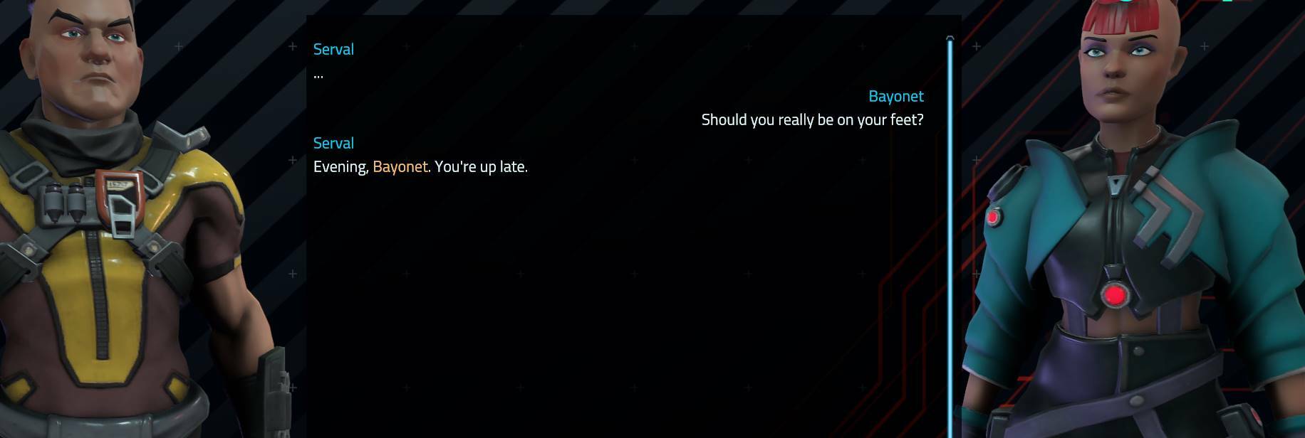 We've dug back into the dialog and setup for the Gunrunner Tag Along story and its accompanying legwork and adding more choices in exposition dialog, added a lot more discussion about the city's lore and conditions and finally improved the results so that they are more meaningful. Ignore the request will in fact lead to a black out of Gunrunner services, and the results impact more bonuses to the involved character.