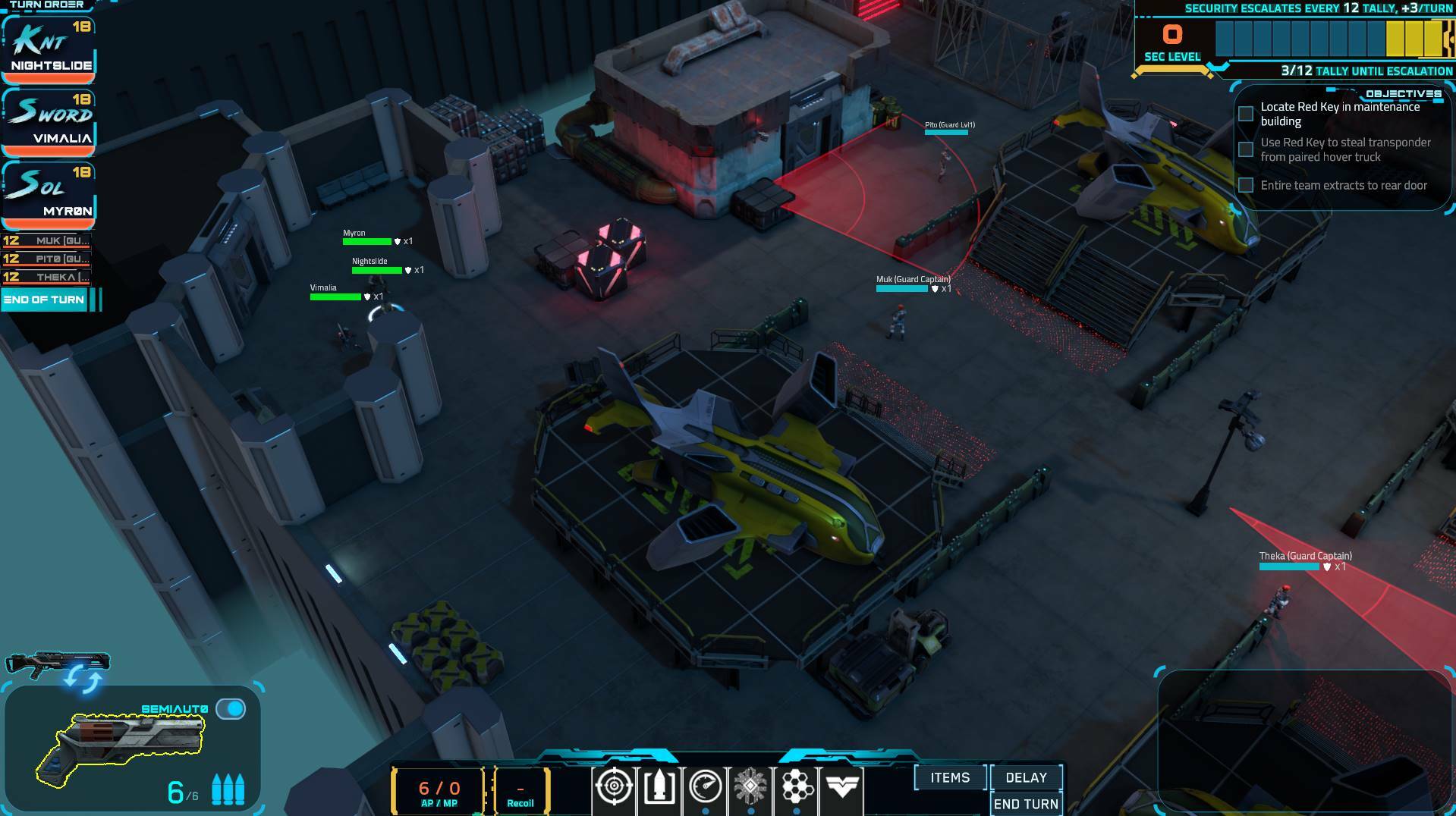 There is an all-new playtest level Hover Theft that sees you breaking into a hover truck maintenance field to steal a transponder off a registered truck, which will come in handy in a later heist. There is an all-new Three Switch in which you prep a power utility field with a specialized virus that will help knock power off at an appointed time, also to help with a future heist. And finally, we've added an all-new second variant level of Sec Gauntlet a security-device focused puzzle level. The level is completely different, so chose Sec Gauntlet and then pick SVI P1 or SVI P2 at deployment.