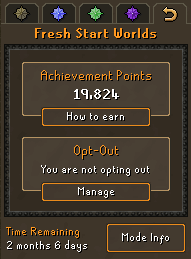 Fresh Start Worlds are brand-new worlds, with no established economy and fresh HiScores! There are both members and free-to-play Fresh Start Worlds, and the gameplay is exactly the same as it is in the main game – it’s just new!