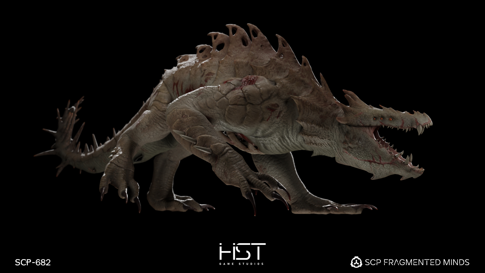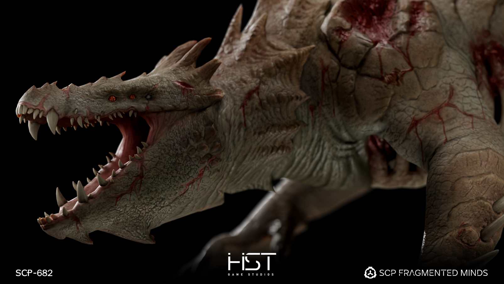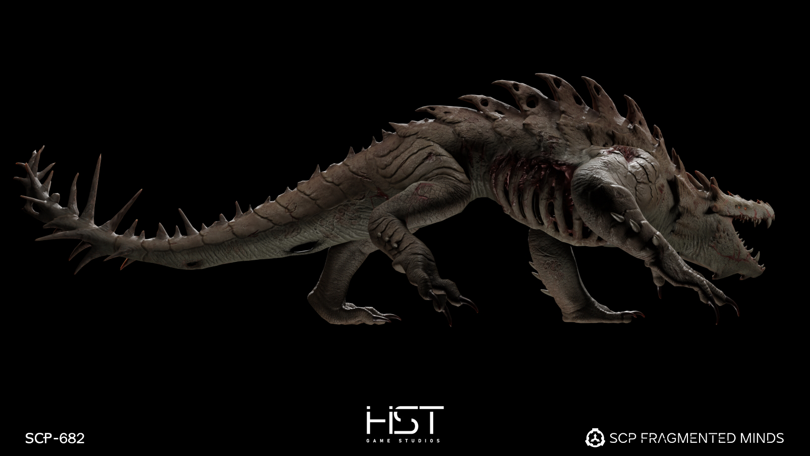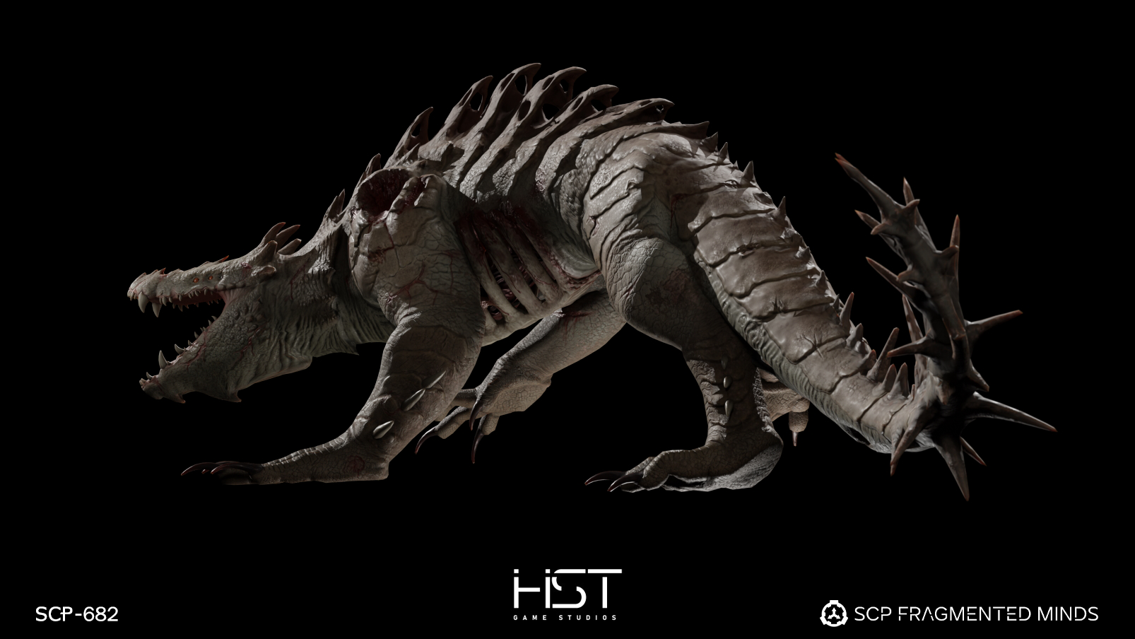 We are also extremely excited to be able to announce that we are adding in SCP-682 as a prominent character within SCP: Fragmented Minds! This creature took a ton of back and forth on the model and features a lot of tissue damage and scarring consistent with its acidic storage containment procedures that keep it weak enough to contain for longer periods of time.