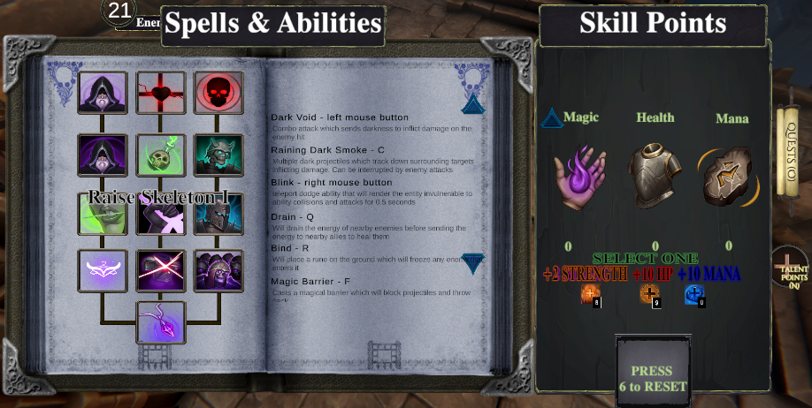 In addition to improving the reset skill point UI, there is now also a list of your character's abilities when you press N. Further work on the reset skill point UI will include other improvements such as clicking the skill point (e.g. mana/strength, HP, or mana) instead of pressing keys 6 - 7.