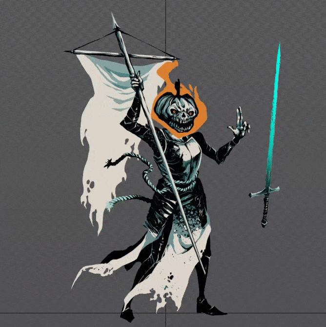 We also made Joanne wear a pumpkin helm! She may not be happy about that, as we can now say she's a little empty-headed, but she still has some guts to stand against her adversaries in Nadir and cuts her way down in an updated game version.