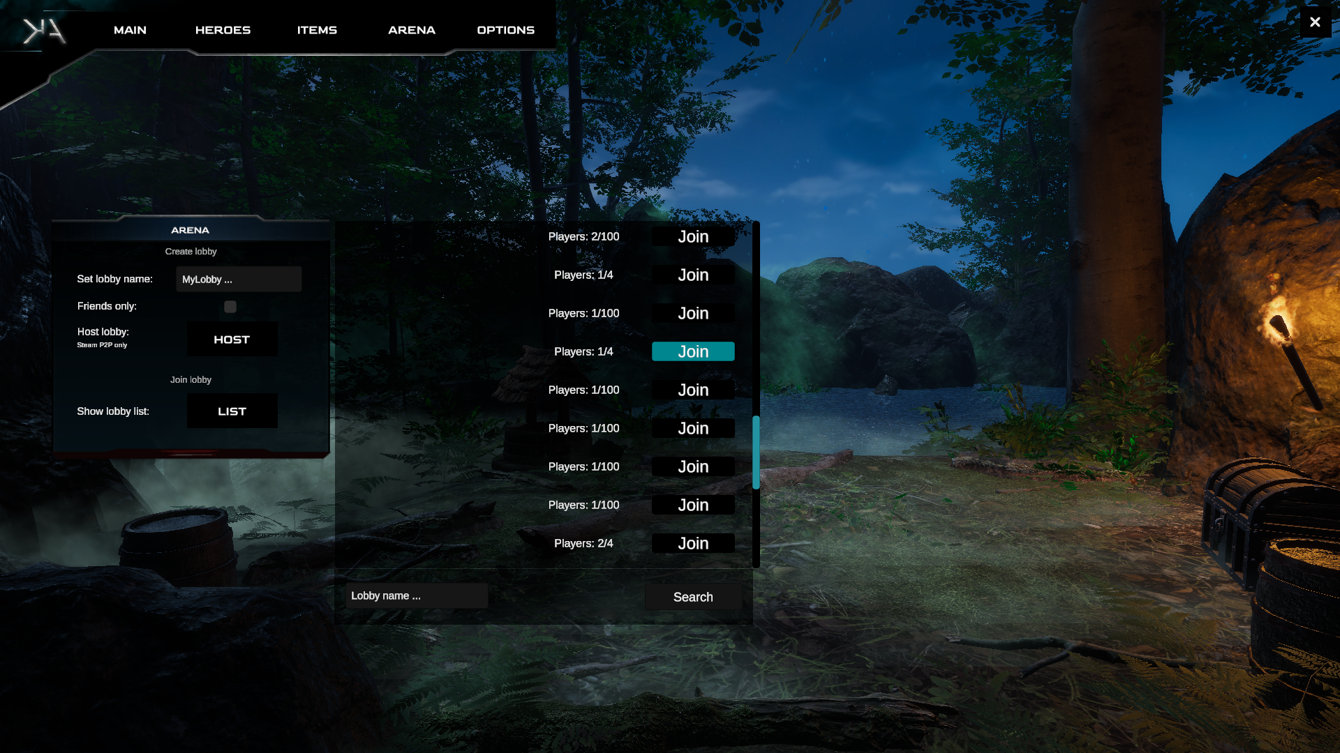 Instructions on how to start a match Go to ARENA panel,there are 2 options: HOST: Set name of your new lobby(any name you want) , friends only toggle (lobby visible for friends only) LIST: List of active lobbies (you can search for a lobby name)