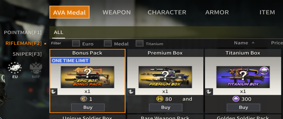 The Bonus Pack (1 Euro) will get you ready for the combat exercises. This package consists of 5 Epic Boxes and can only be obtained once. We prepare the package to thank all users who are waiting for the November update. This package can be obtained in the in-game shop.