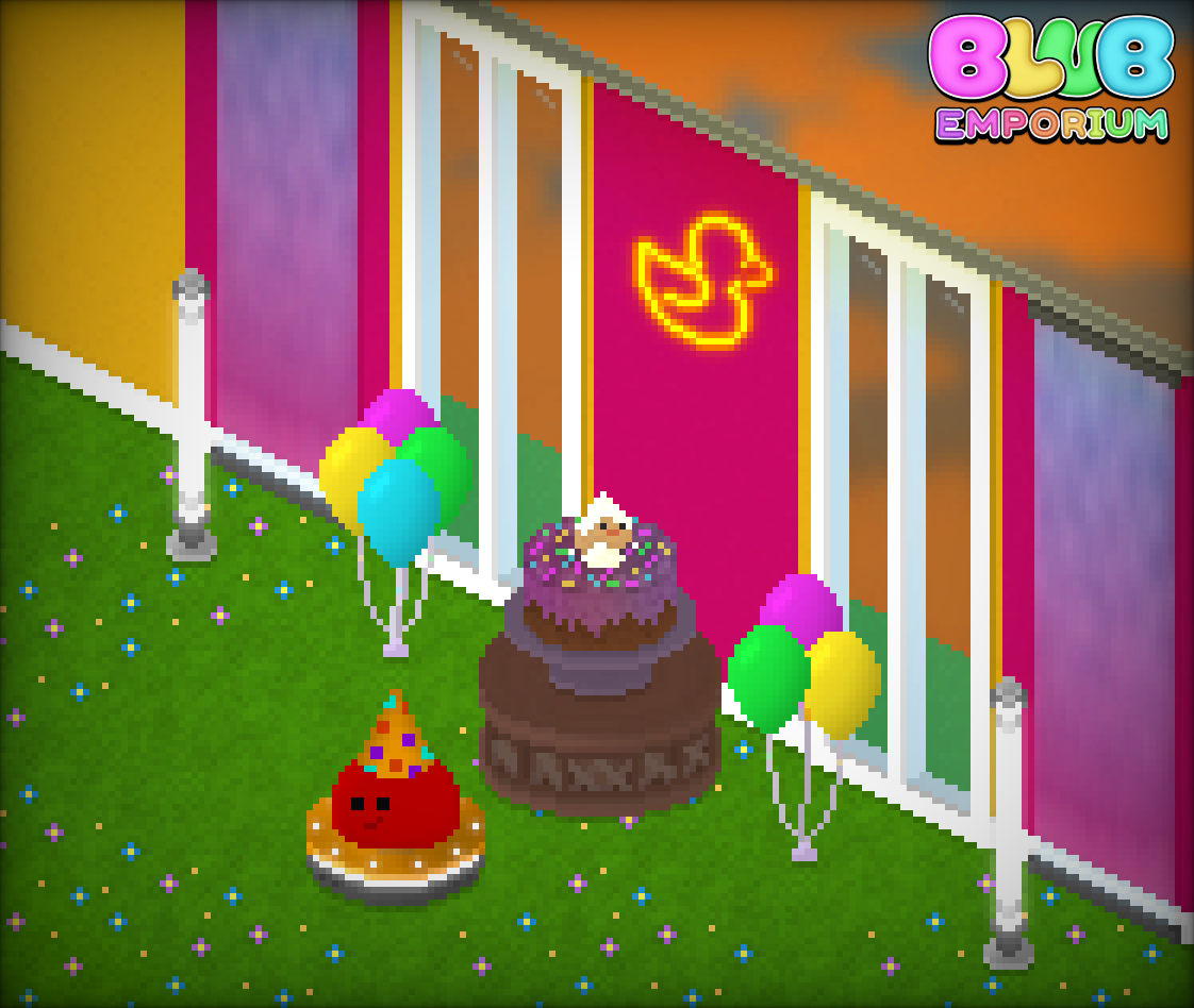 In-game you'll be able to get yourself the "Release Cake" (Seasonal Item) from the Catalogue to put in your Emporium and celebrate with the Blubs!
