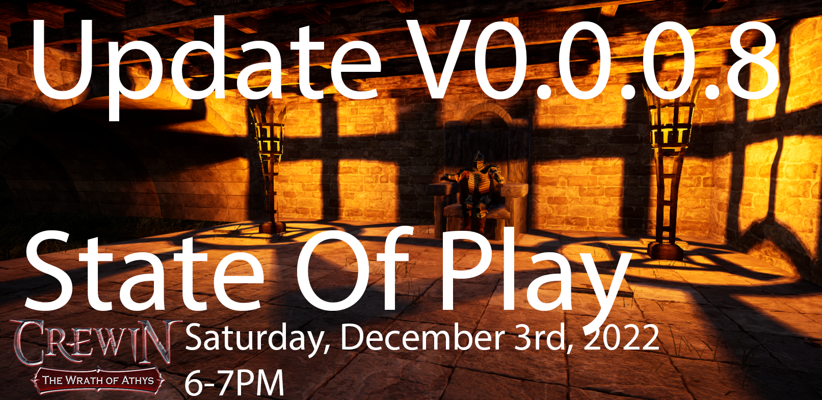 This is the official announcement that there will be a Live State of Play event for the new update at 6 PM on December 3rd. The event is Live on Discord and may be streamed on Twitch.