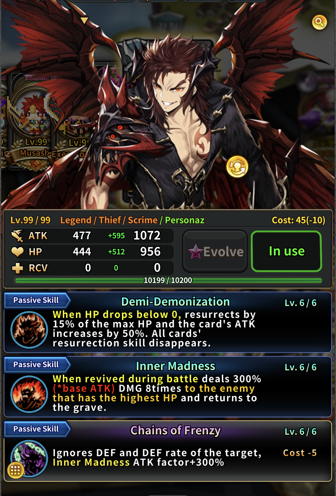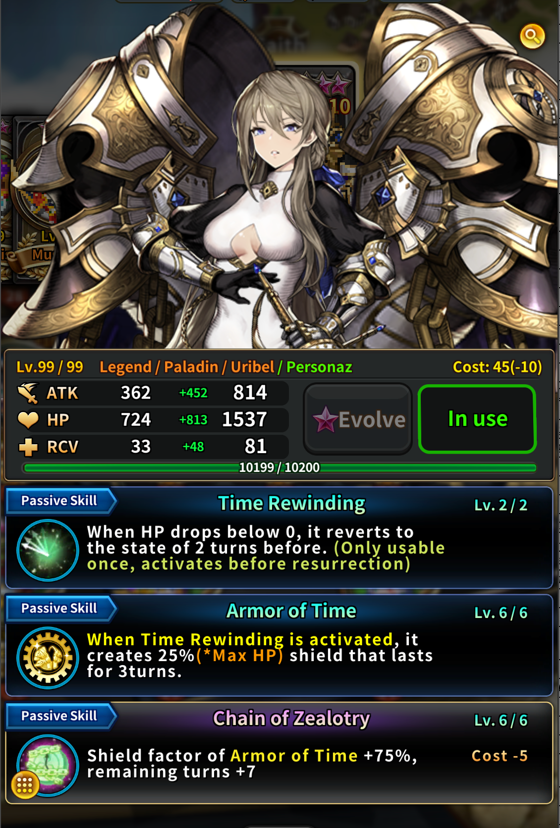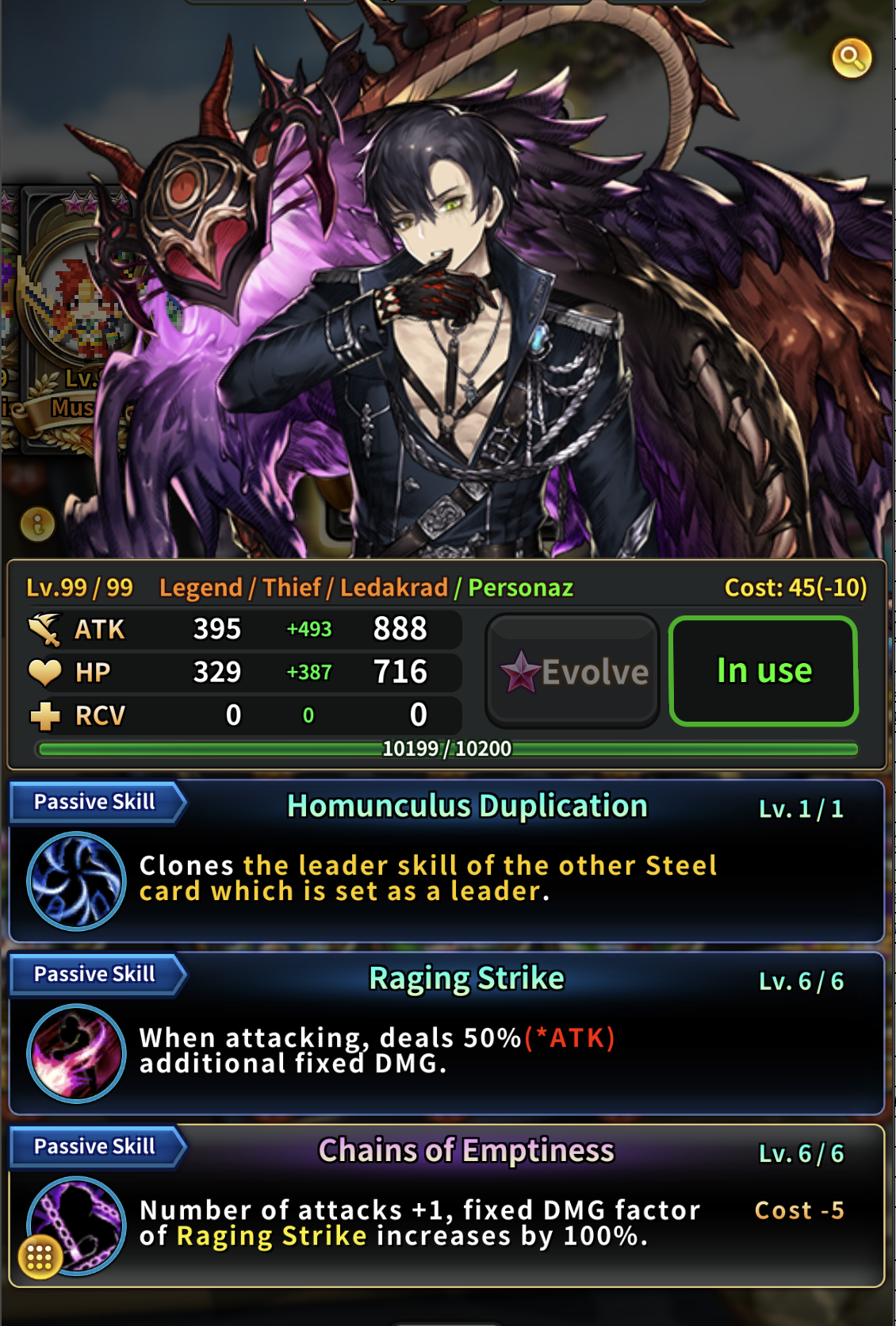 ※ Brave Nine Personaz Cards Notes - The screenshots below have been taken based on the card that has the stats of card stack +10, Limit-Break 6 star, Limit-Break level 99, and 6 star exclusive Limit-break skill owned. - The illustration can be viewed when selecting the card in the card menu. - The illustration can be checked when summoning the card. - The illustration can be checked when using certain leader skills. - The voices of the Brave Nine Personaz characters will be provided in Japanese. - Each character owns the exclusive Limit-break skill. - Mystic Explosion, Wild Card, Lightweighting, and Chill Out do not appear as the Limit-break skills for the Personaz cards. - The obtainable Limit-break skills are different for each card. Please check the Limit-Break skill option list in the game. - Limit-break wings and Super evolution stones can be used on the Personaz cards. - Exclusive Limit-break skills’ rarity is 5, 10, 15, 20, 25, 35 in the sequence of the limit-break tier. - The Personaz cards will have the amount of essence injection/extraction as below. > The amount of essence consumed for 1 stack injection -> 30,000 > The amount of essence obtained for 1 stack extraction -> 10,000