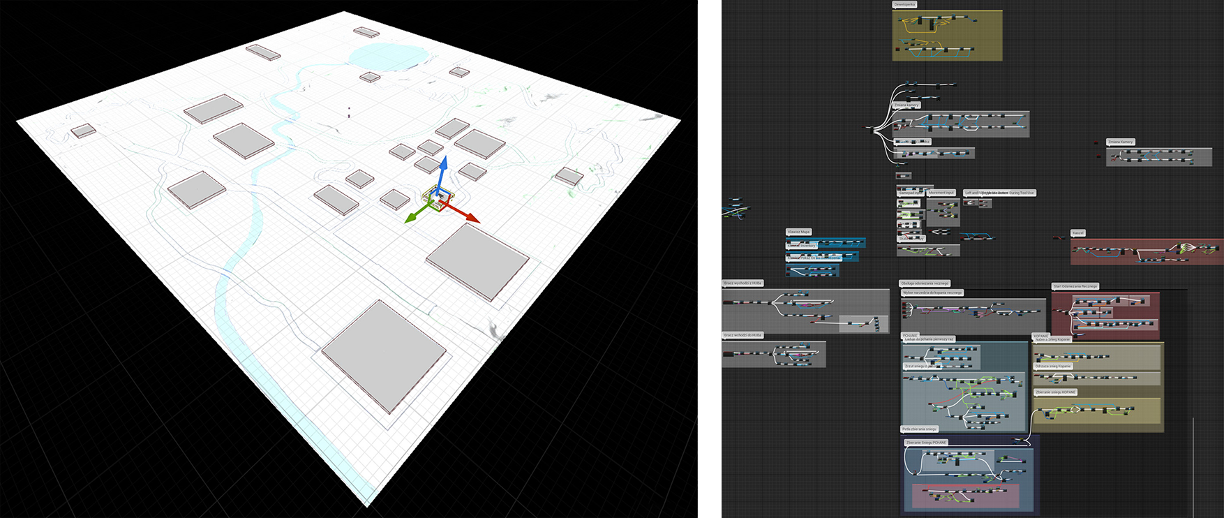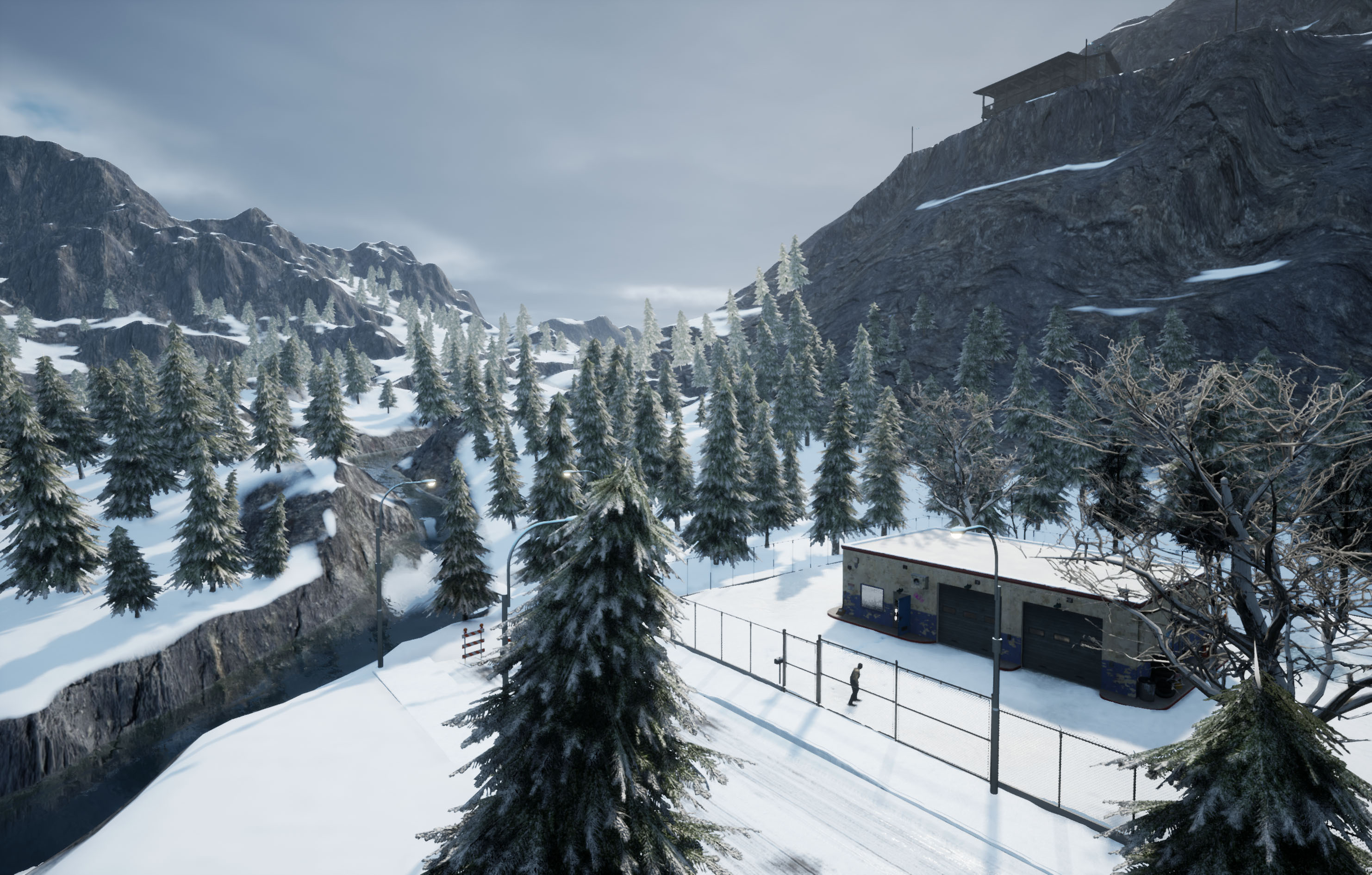 This month, the main focus was on building the environment. Our HUB is no longer a lonely building in an undefined space. Of course, level design is pure pleasure, but there is still a lot of work ahead of us to prepare the environment so that it will take your breath away. At the moment, the garage was perched on a pleasantly gurgling stream at the foot of the mountain with the shelter. But we'll see if that's how it ends...