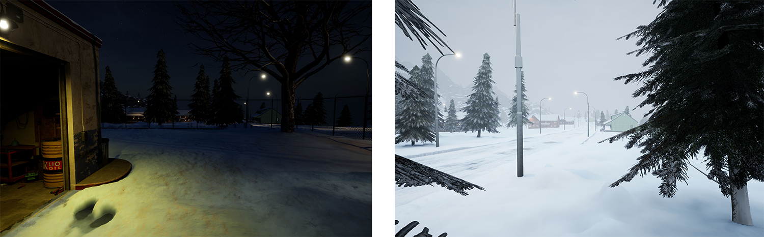 Several nearby properties have also been built ready for snow removal. Lanterns, lamps, street lights or house lighting respond to night and cloud cover. Though when it snows heavily, there is fog, and as in reality, they have little effect on visibility.