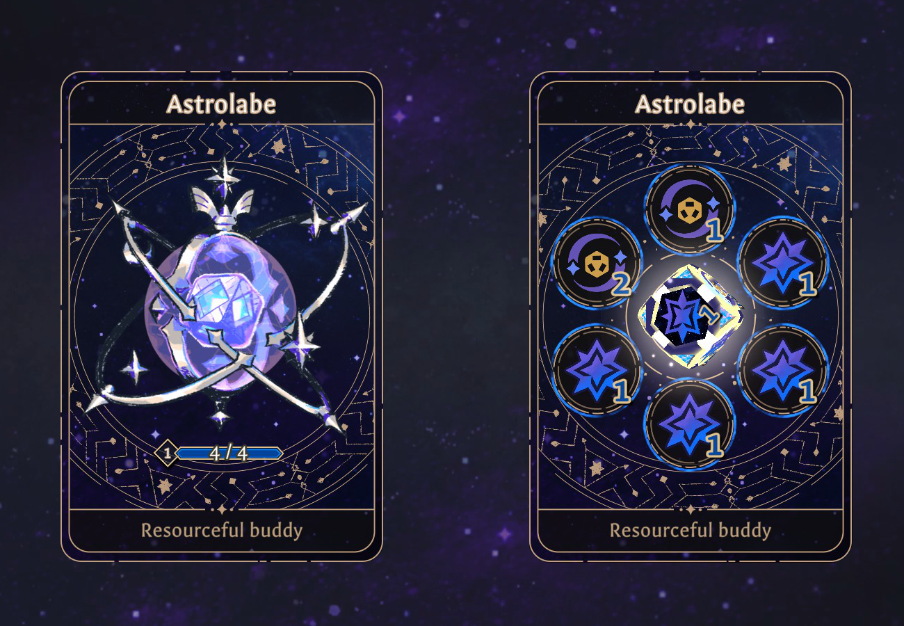 Astrolabe is a sentinel that allows you to turn bad rolls into purifying damage to an enemy. If you roll the correct face, then you can discard a die to deal purifying damage to a random enemy. This sentinel is a very safe sentinel to pick as the other faces are all purify.