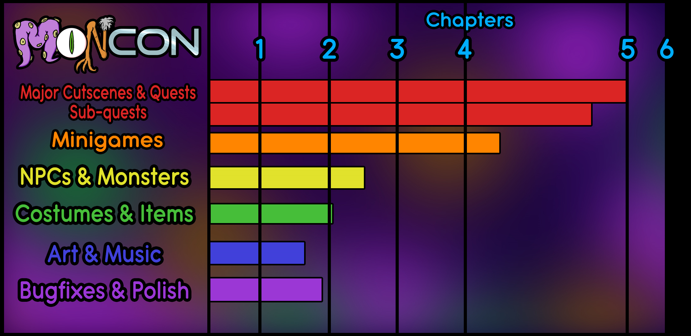 Last but not least, I wanted to give everyone a convention-related update. As per our usual tradition, we will be attending CSGC in Tulsa, Oklahoma in April. This time around, we will have a brand-new build of MonCon that will be feature-complete up to the end of Chapter 3, AKA the first 40% or so of the game. This goes far beyond any public demo of MonCon I've ever shown at previous conventions. If you're in the area, you'll definitely want to drop by to check out all the new game content.