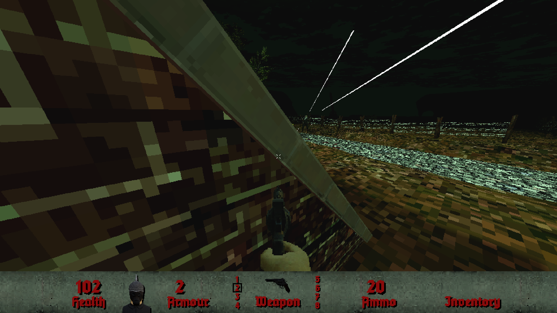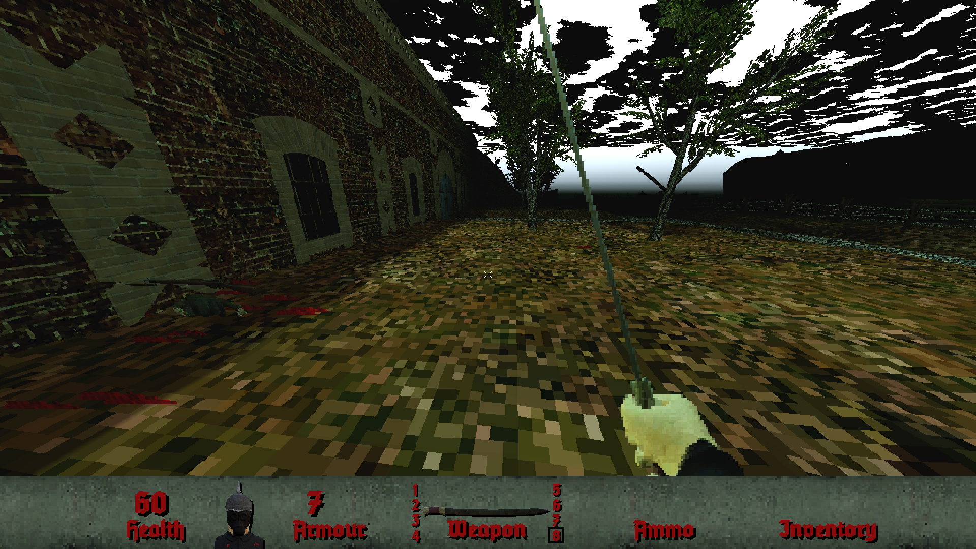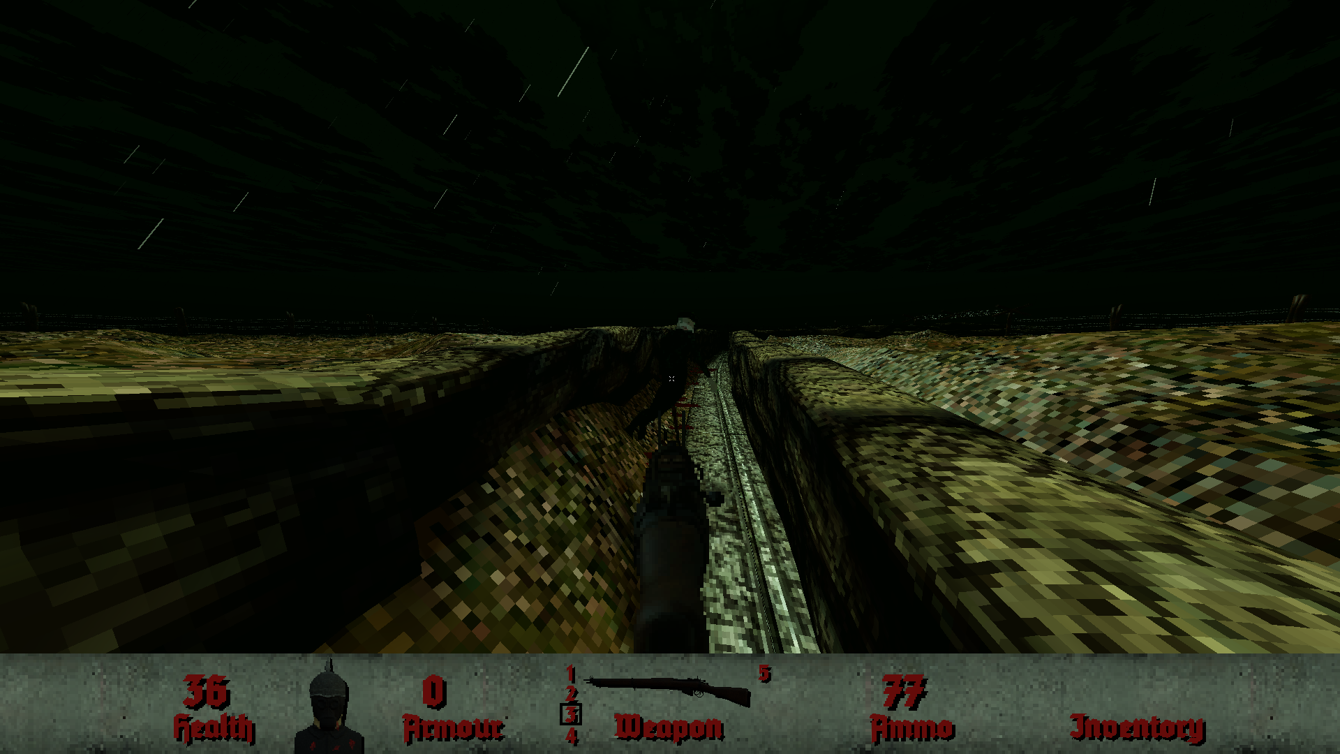 Now onto the new weapon. If you've read the manual, or looked through the key bindings menu, you've probably noticed references to a "sabre" of some kind. This was to be the last weapon in the arsenal, to provide a melee option for when ammo is running low. I had originally intended it to be some kind of cavalry sabre, since World War One had cavalry in it right? Well, I did a bit more research and had a better idea - it looks like this: