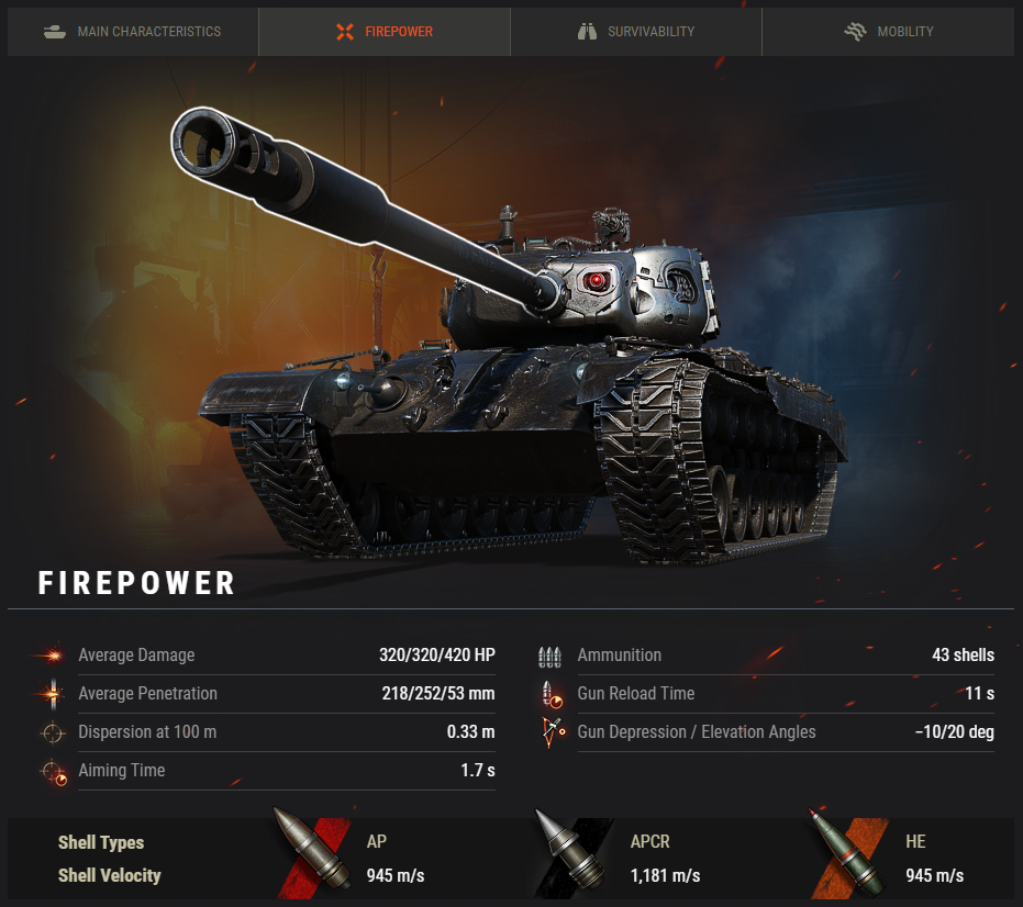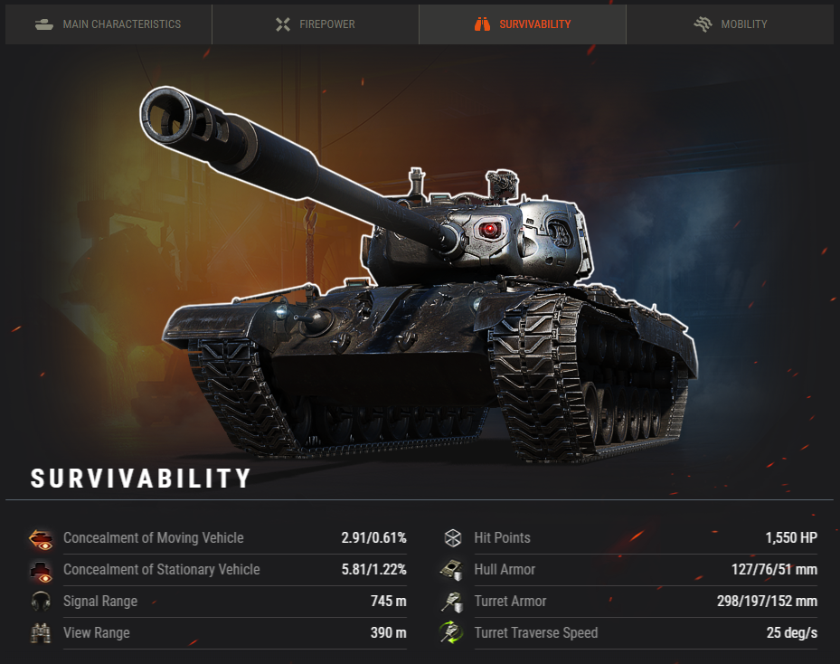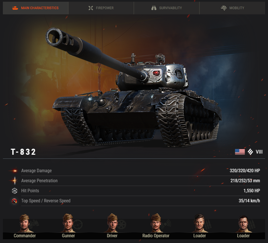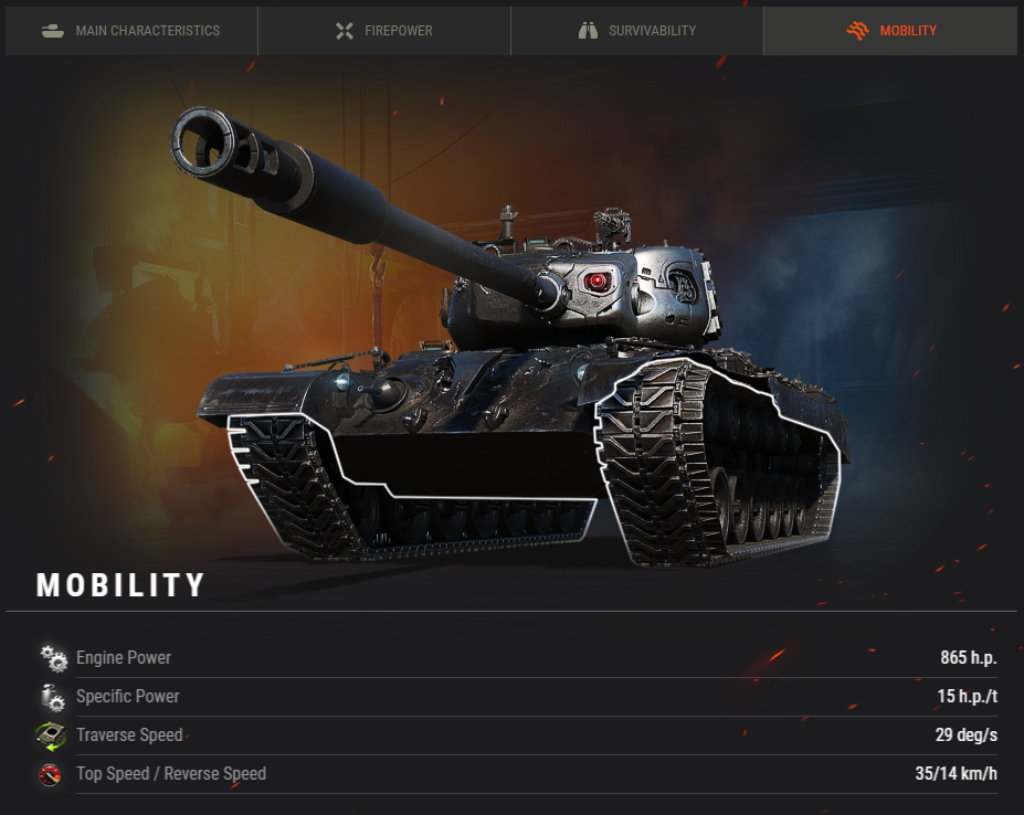 The parameters displayed are valid for the vehicle with each crew member trained to 100% major qualification level. Some vehicle characteristics can be further improved with the Commander's bonus to major qualification level, crew perks, and skills, as well as special in-game items.