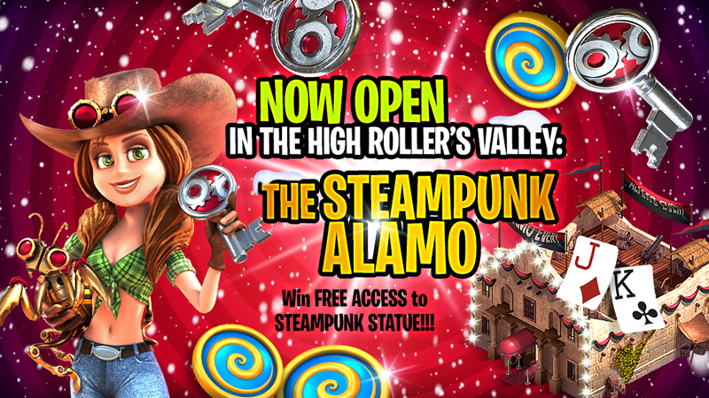 The Steampunk Alamo is OPEN!⚙️🕰🥽 Fix your vest and clean your goggles, it is time for adventure at the High Rollers' Valley!🧭 Take advantage of its low buy-in and win BIG prizes! 🤩💰 Start playing TODAY!