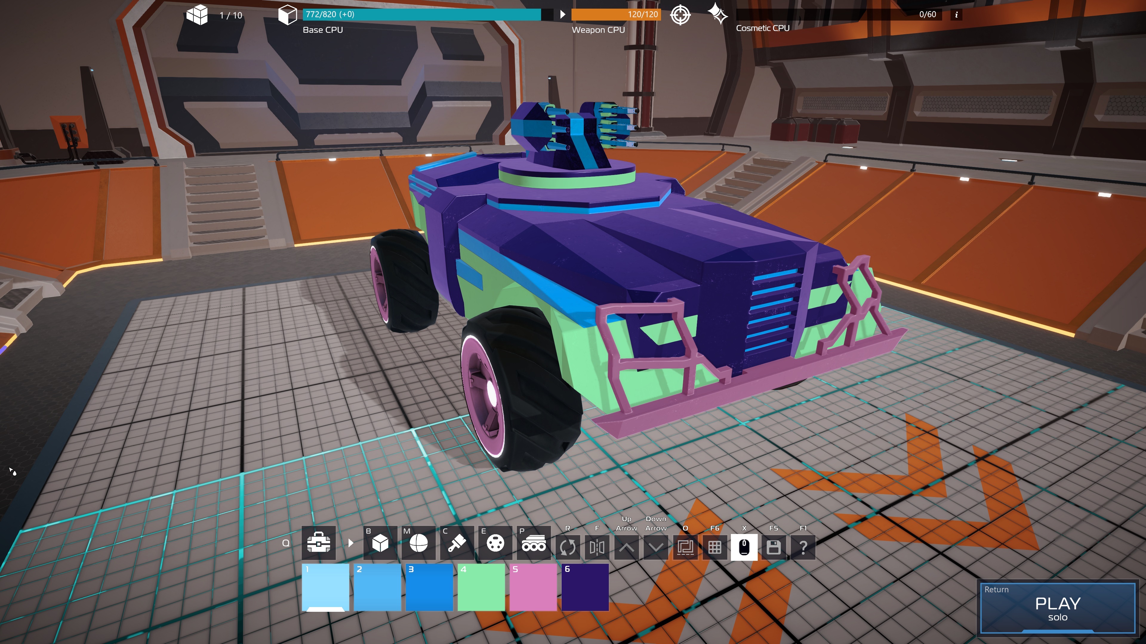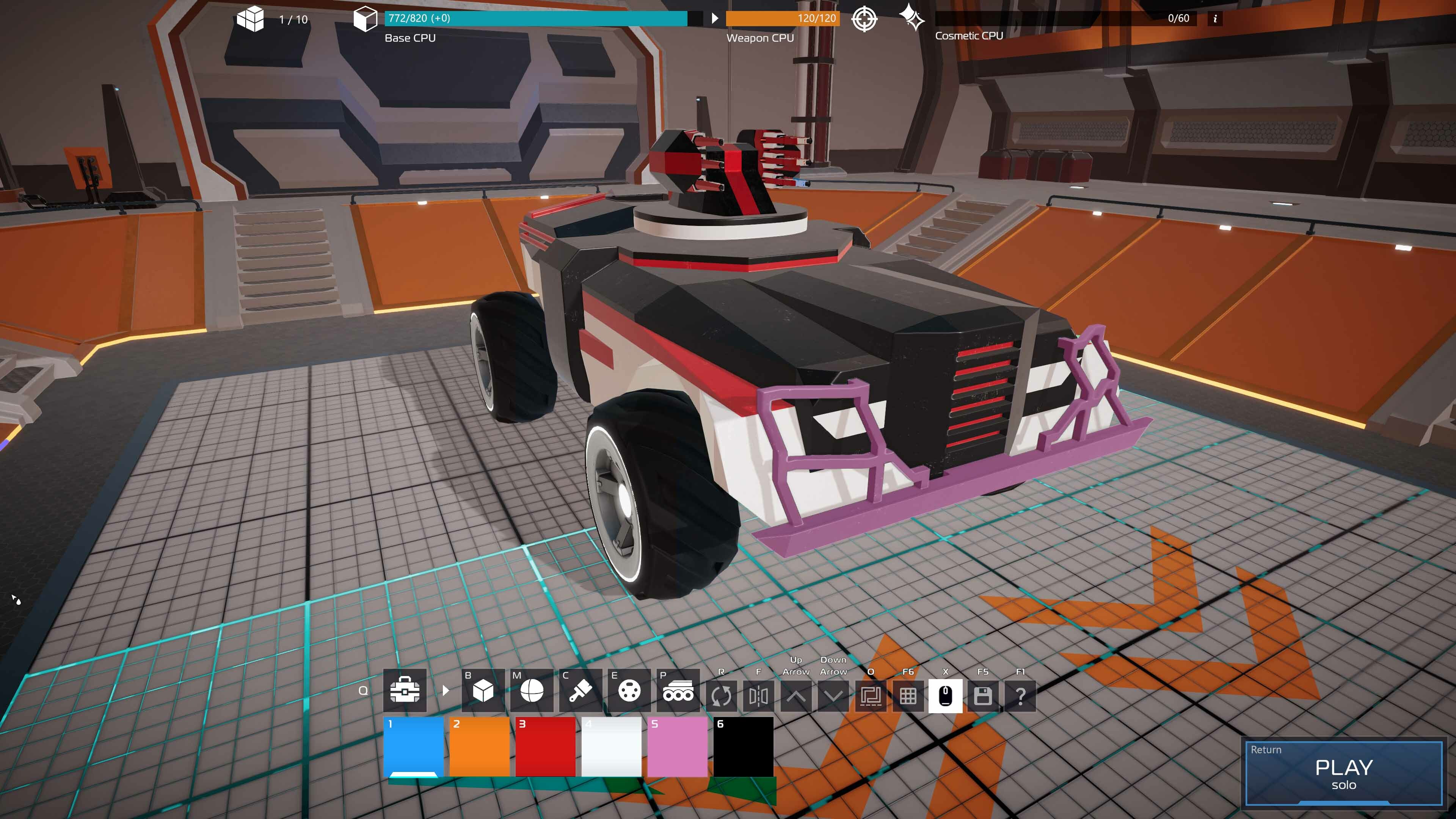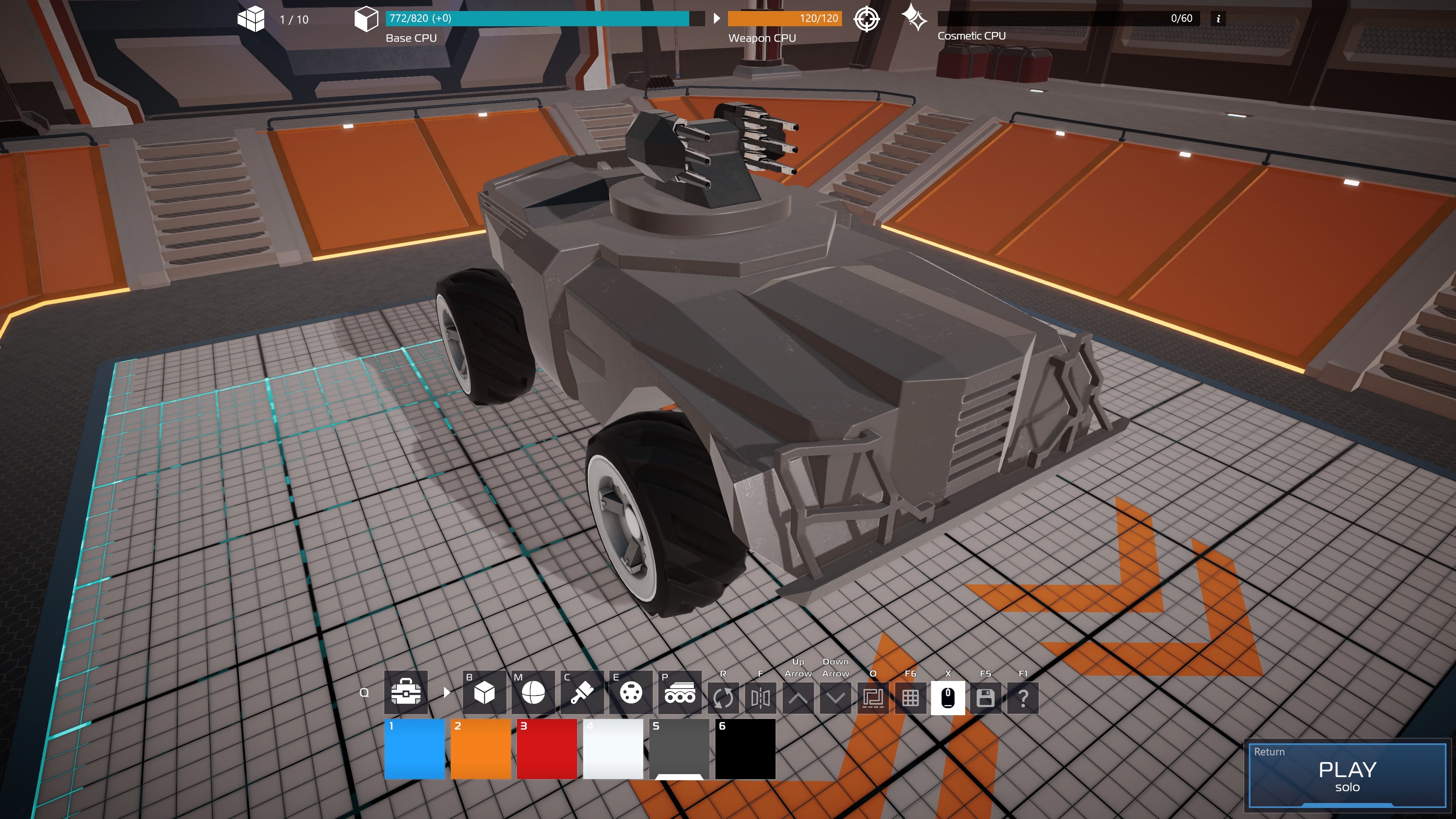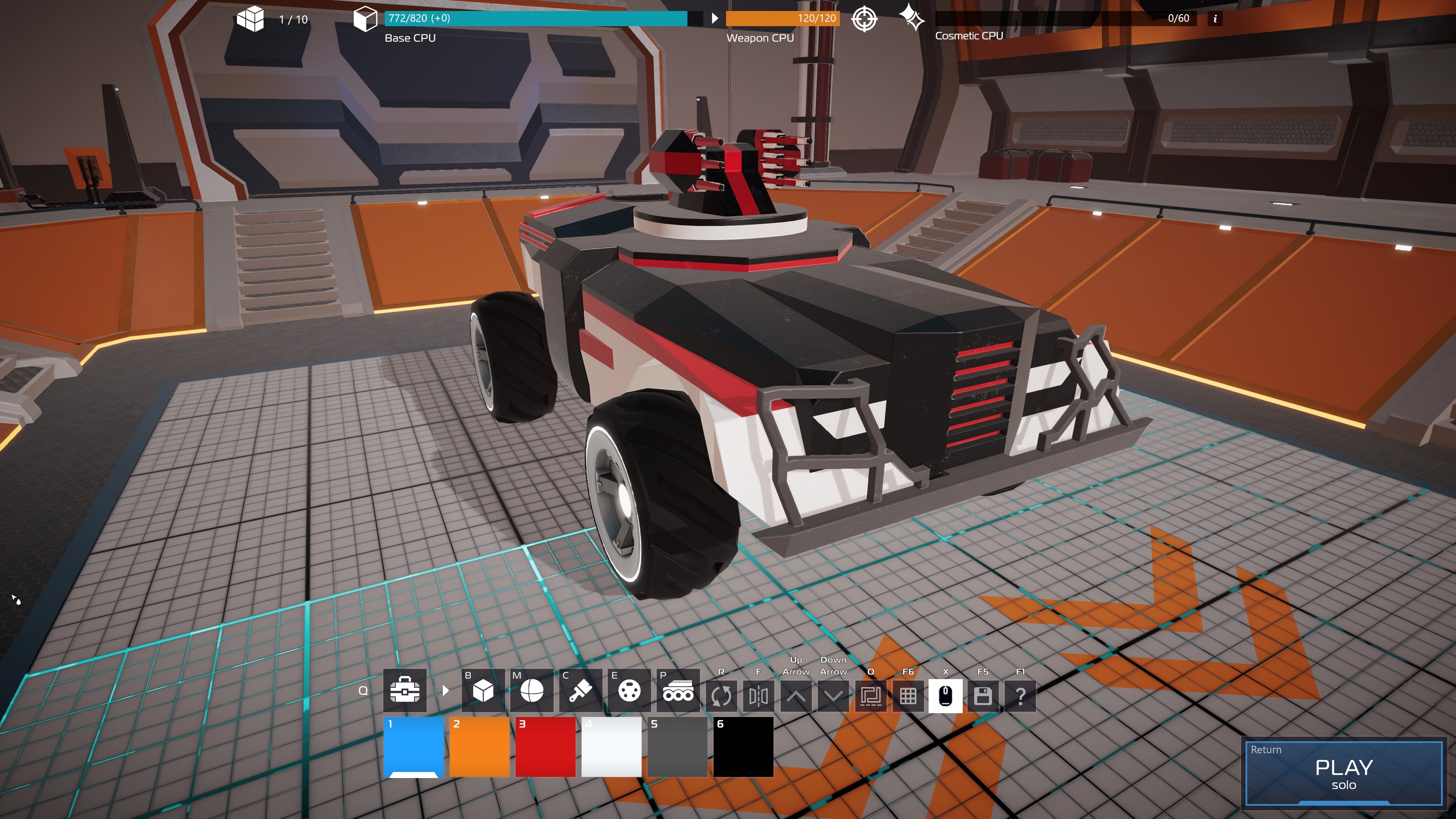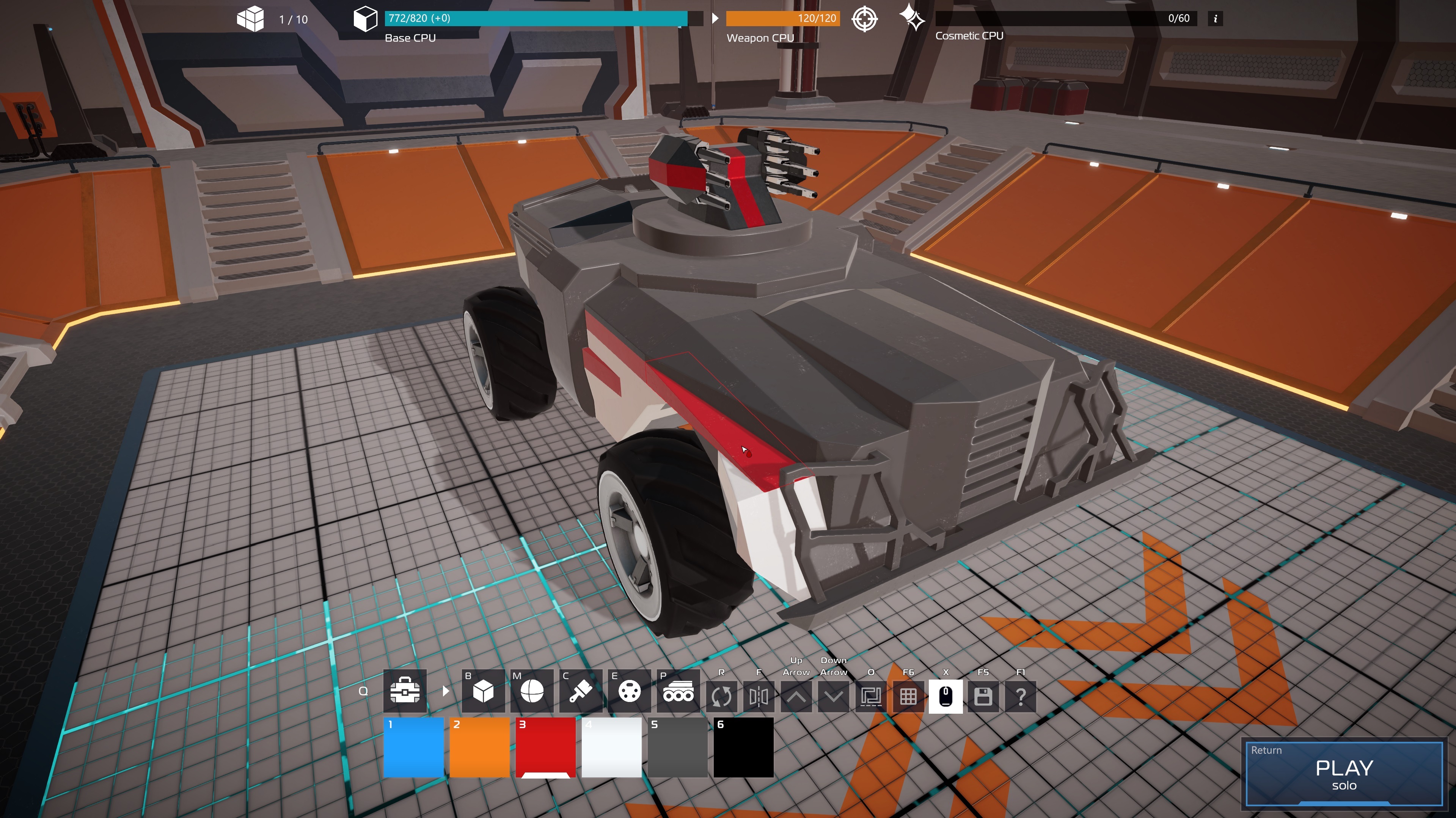 Pressing the C button will enter colour mode where the hot bar will represent the six colours that your Robot will be painted. Right now the Robot is exclusively using the colour grey and we can’t have that!
