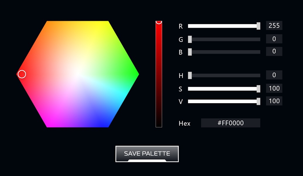 This hexagonal shape of rainbows is the colour picker. Marvel in its presence for it contains over 16 million shades of colours! Don't believe us? Go on, count them, we’ll wait…