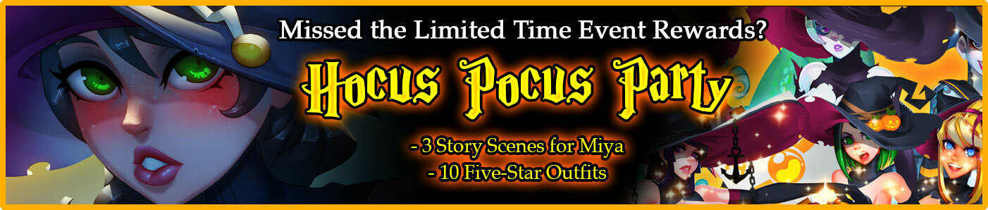 We wanted a way for players that missed the limited time Halloween Event to be able to experience it, so the unlockable content is now available for purchase in the shop! This includes 3 story scenes with Miya and 10 Five-Star Halloween outfits. Unlock seasonal event content free by playing them while they are live!
