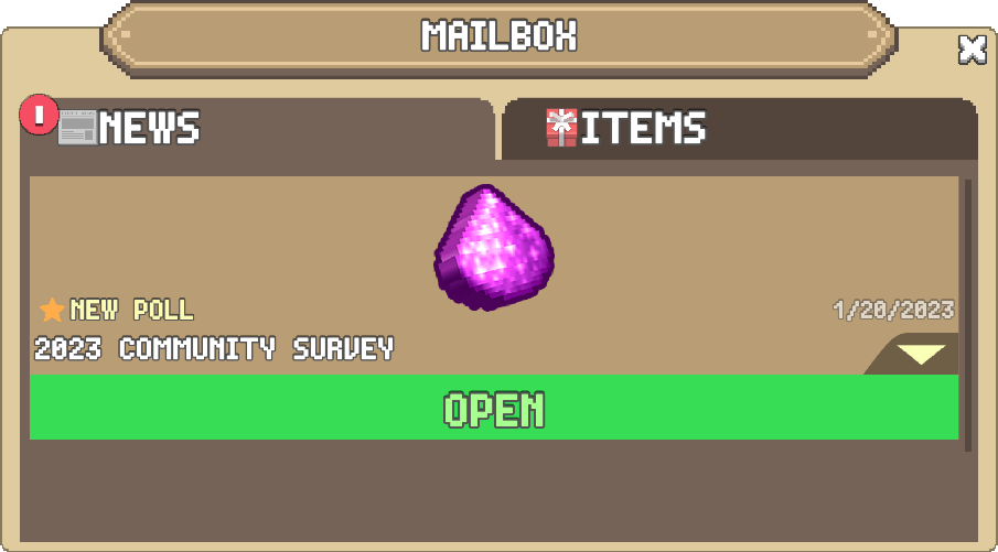 This update includes a new Survey/Poll system which you can find inside the in-game Mailbox. We're excited for the future and we cant wait to share more with you guys!