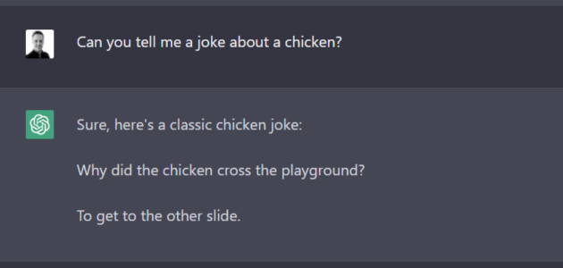 And because we have so little to report, I asked Chat GPT for a joke about a chicken.