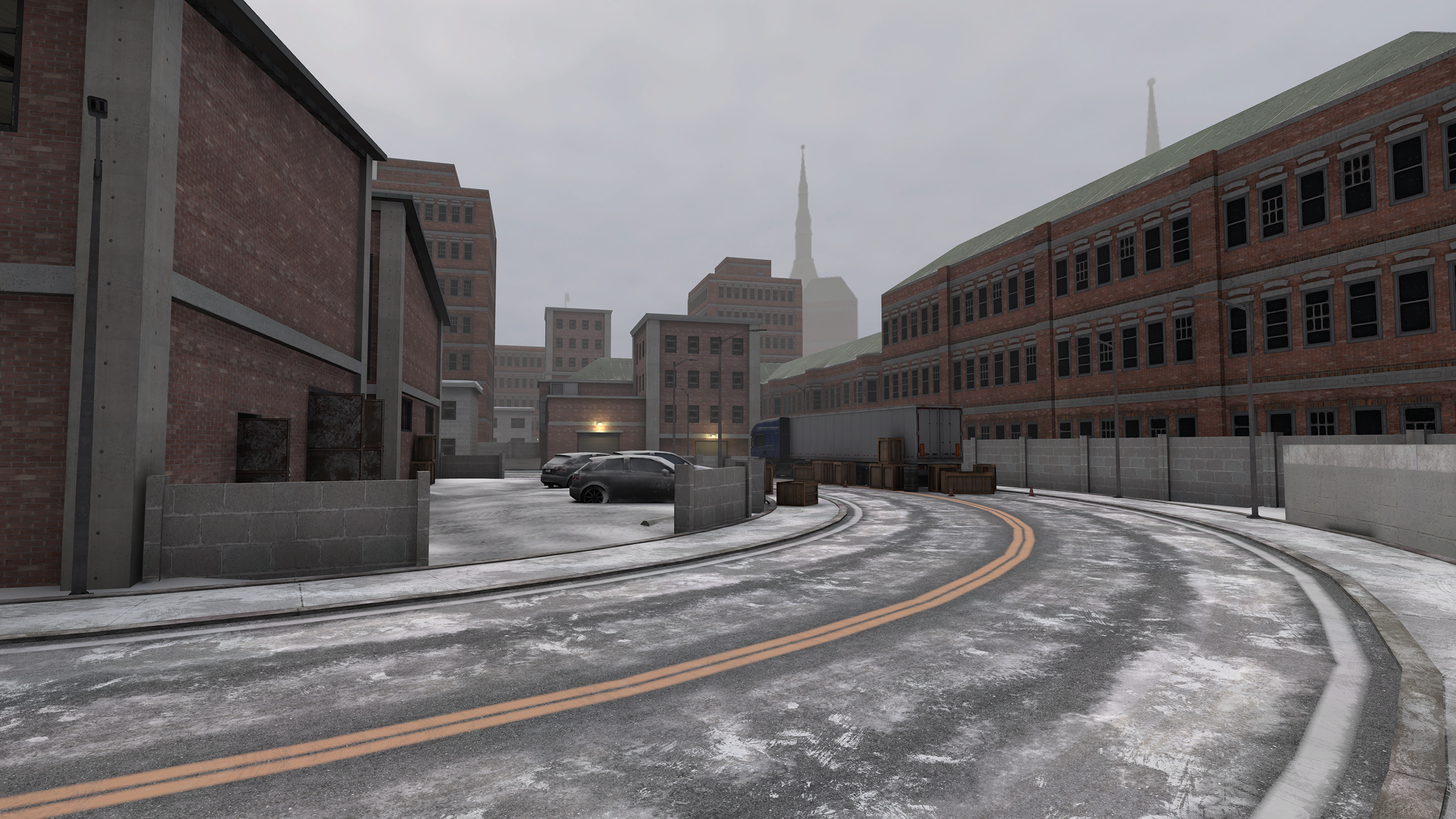 For the level design of Egress, we knew we wanted to emphasize the close-quarters weapons available in Update 1.10. The map is tightly packed with alleyways, warehouses, loading docks and a centralized hotel that make for a variety of ways to strategize with your team to cover ground effectively, outflank your opposition and make gameplay fresh with each round. We want to take this moment to share more images showcasing some of the outside areas on this level and leave the rest for you to discover.