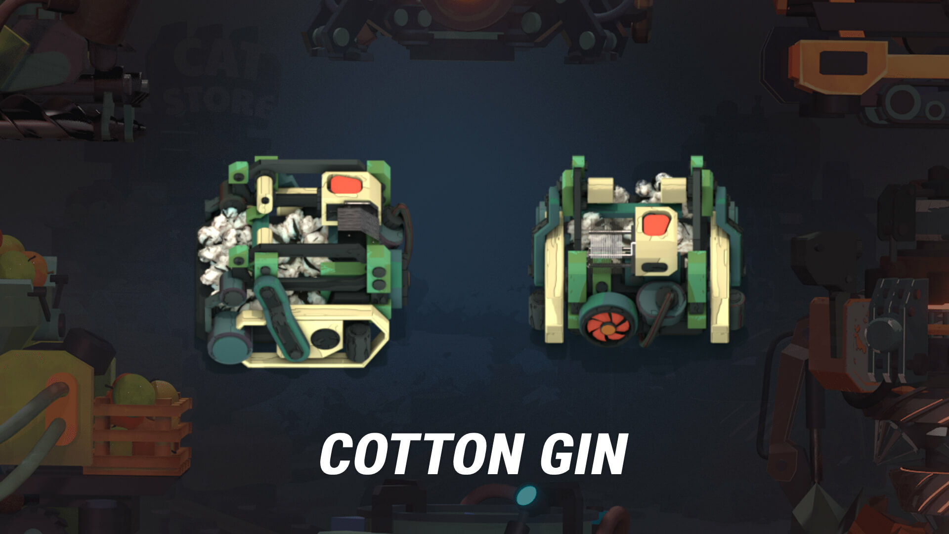 Speaking of quality, Cotton Gin is your best friend for producing top-quality Cotton! According to our research, the original Cotton Gin was invented in 1793 by an I.L.L.U.M.I.N.A.T.I. member, hiding under the alias of Eli Whitney. This hi-tech version of that magnificent machine is perfect for refining cotton to make sure no Martian dust and sheep nano-particles end up in the product.