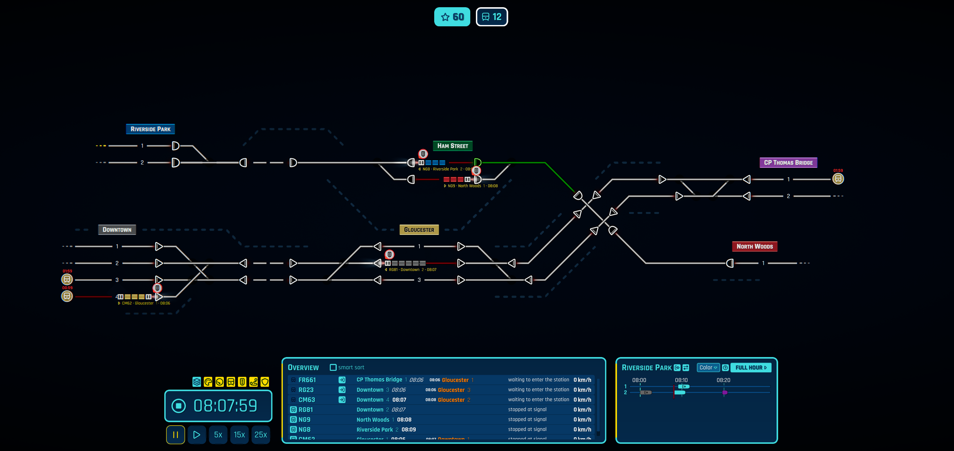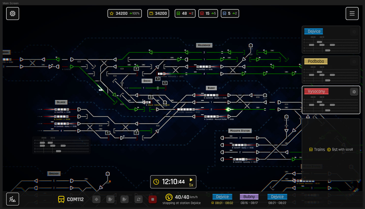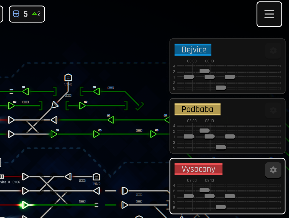 The most significant notable change (next to the different color pallette) is getting rid of these bottom panels. We've realized we can't share a space for the station timelines with node details (bottom right panel). When you need a node (signal, sensor, etc.) detail, you want to configure it - for example, the sensor configuration. But you don't need that panel to be visible while you are actually "playing" the game. On the other hand, the station timeline is something crucial to be visible all the time. And not just once, right? Clearly, it's the most wanted feature as of now.